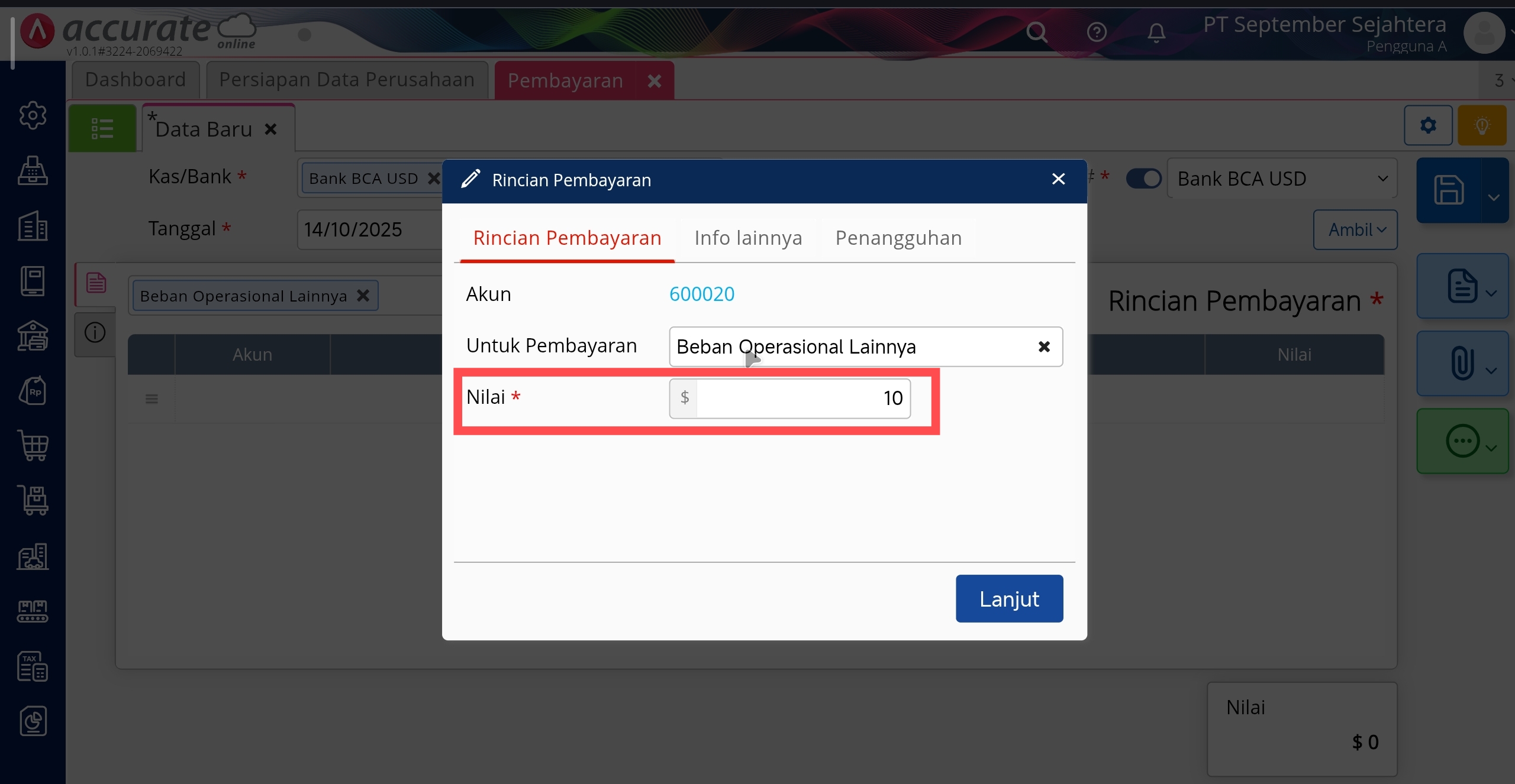 Pada Accurate Online tersedia fasilitas untuk mencatat pembayaran dengan mata uang asing. Contoh dalam pembayaran beban digunakan akun kas atau bank mata uang asing.