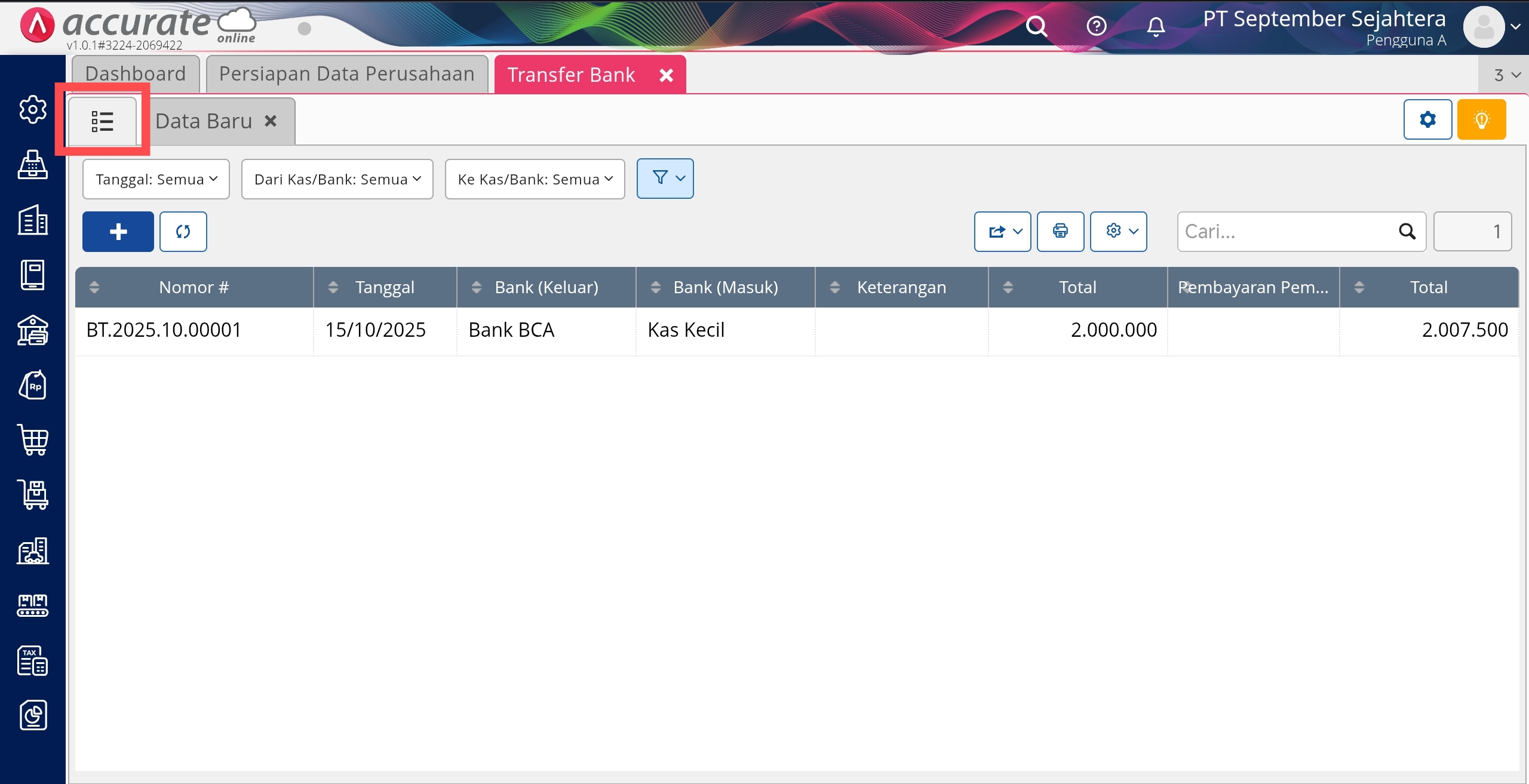 6. Untuk melihat daftar transfer bank yang telah Anda buat, klik tombol Daftar Transfer Bank.