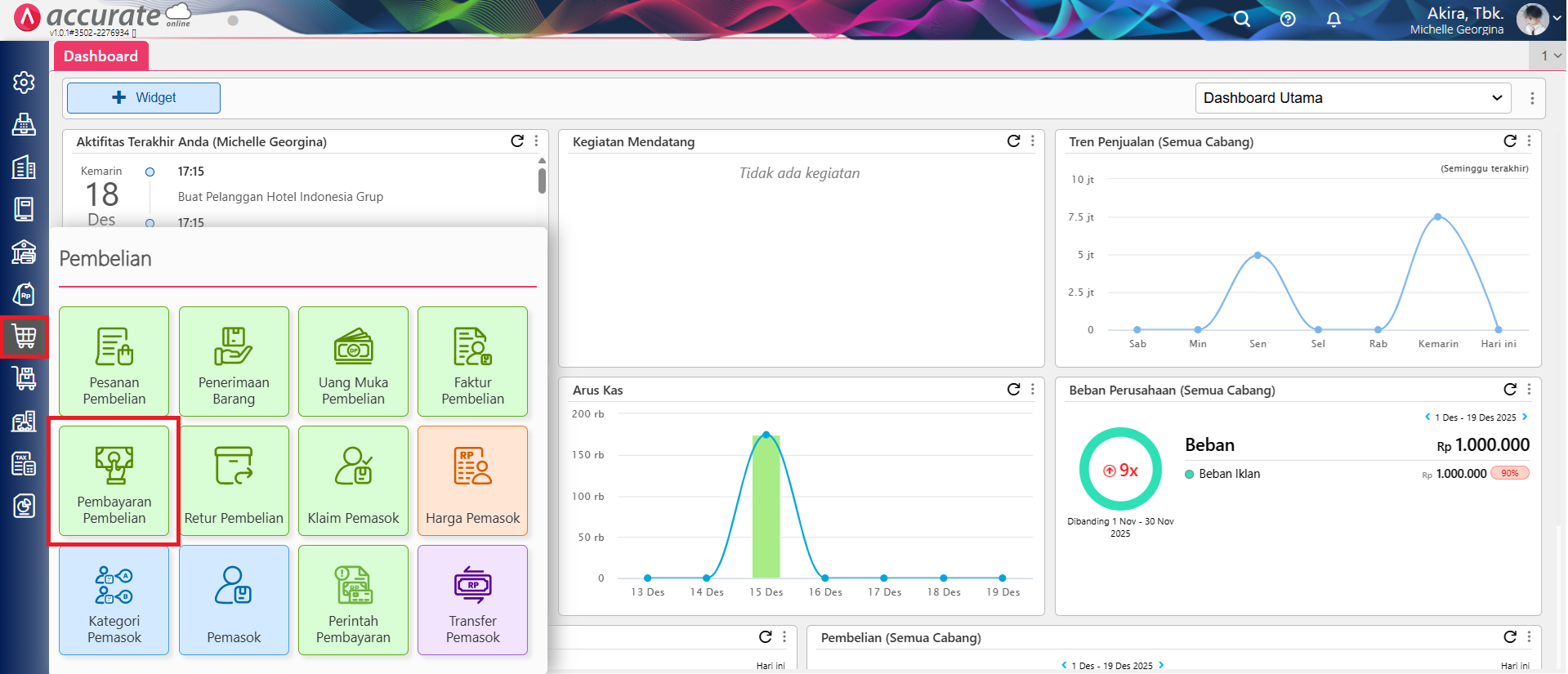 - Klik menu Pembelian | Pembayaran Pembelian.