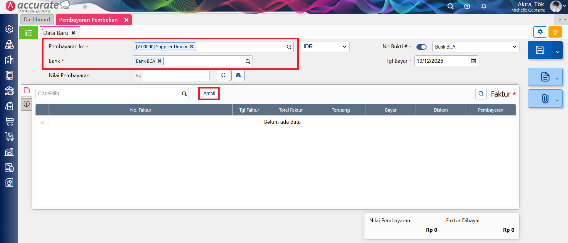- Lengkapi informasi Pembayaran Ke, Bank, dan informasi yang lain, lalu klik Ambil.