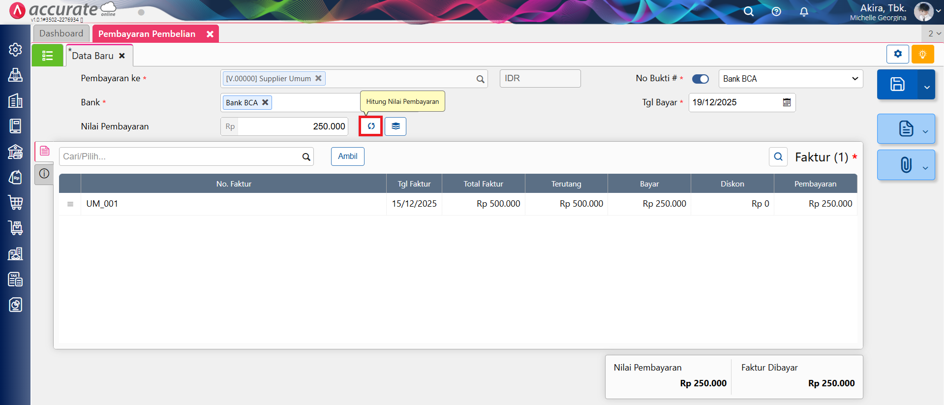 - Klik tombol Hitung Nilai Pembayaran, dan jika telah selesai klik Simpan.