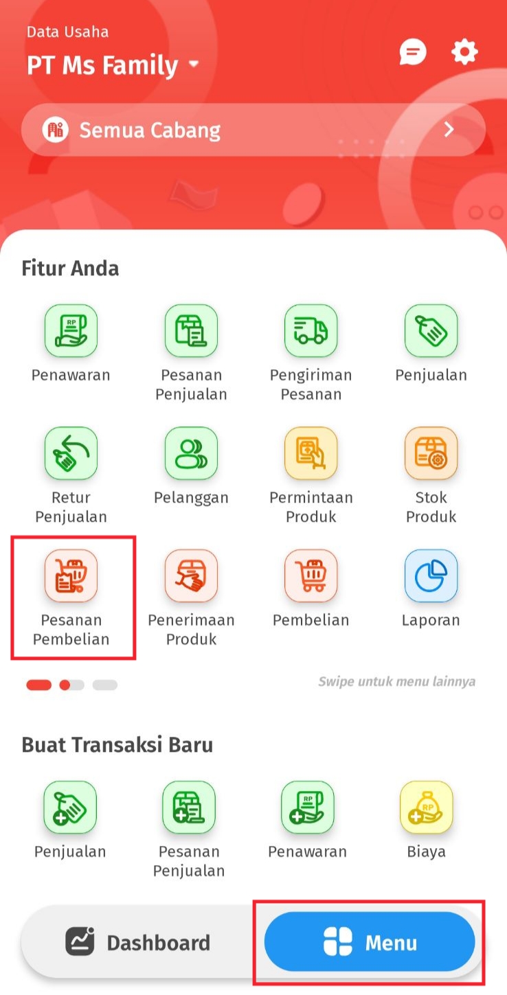 - Pada halaman Menu, klik Pesanan Pembelian.