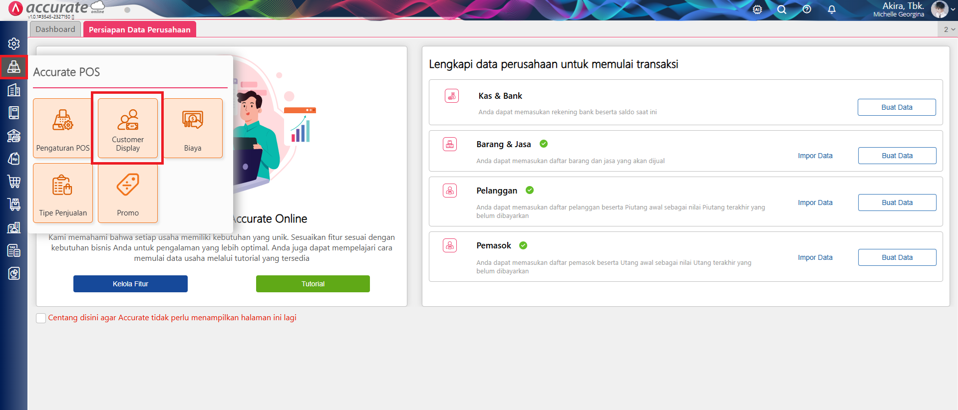 - Masuk ke menu Accurate POS | Customer Display.