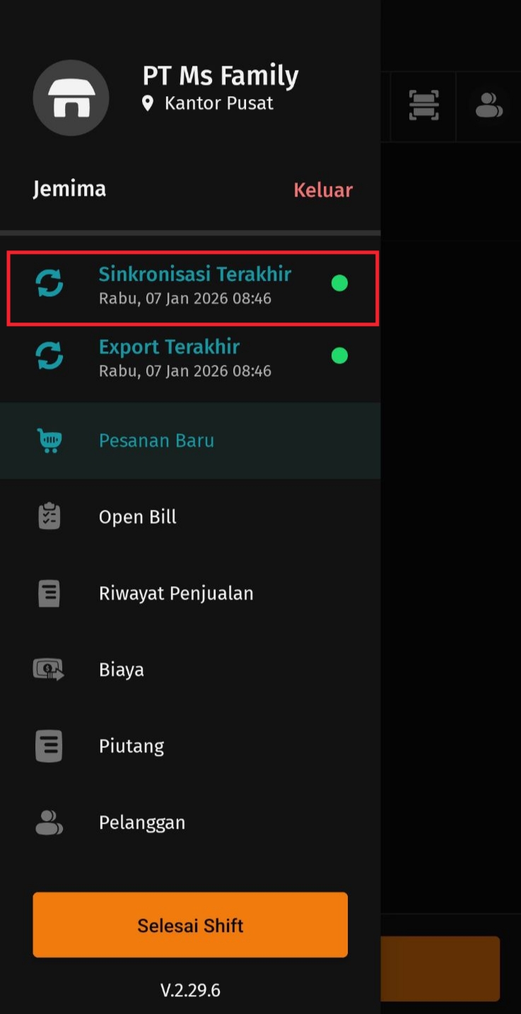 - Anda bisa melakukan proses sinkronisasi ini, setiap akan mengakhir Shift Kerja untuk memastikan semua transaksi yang diinput sudah ter-sinkronisasi ke database Accurate Online anda.
