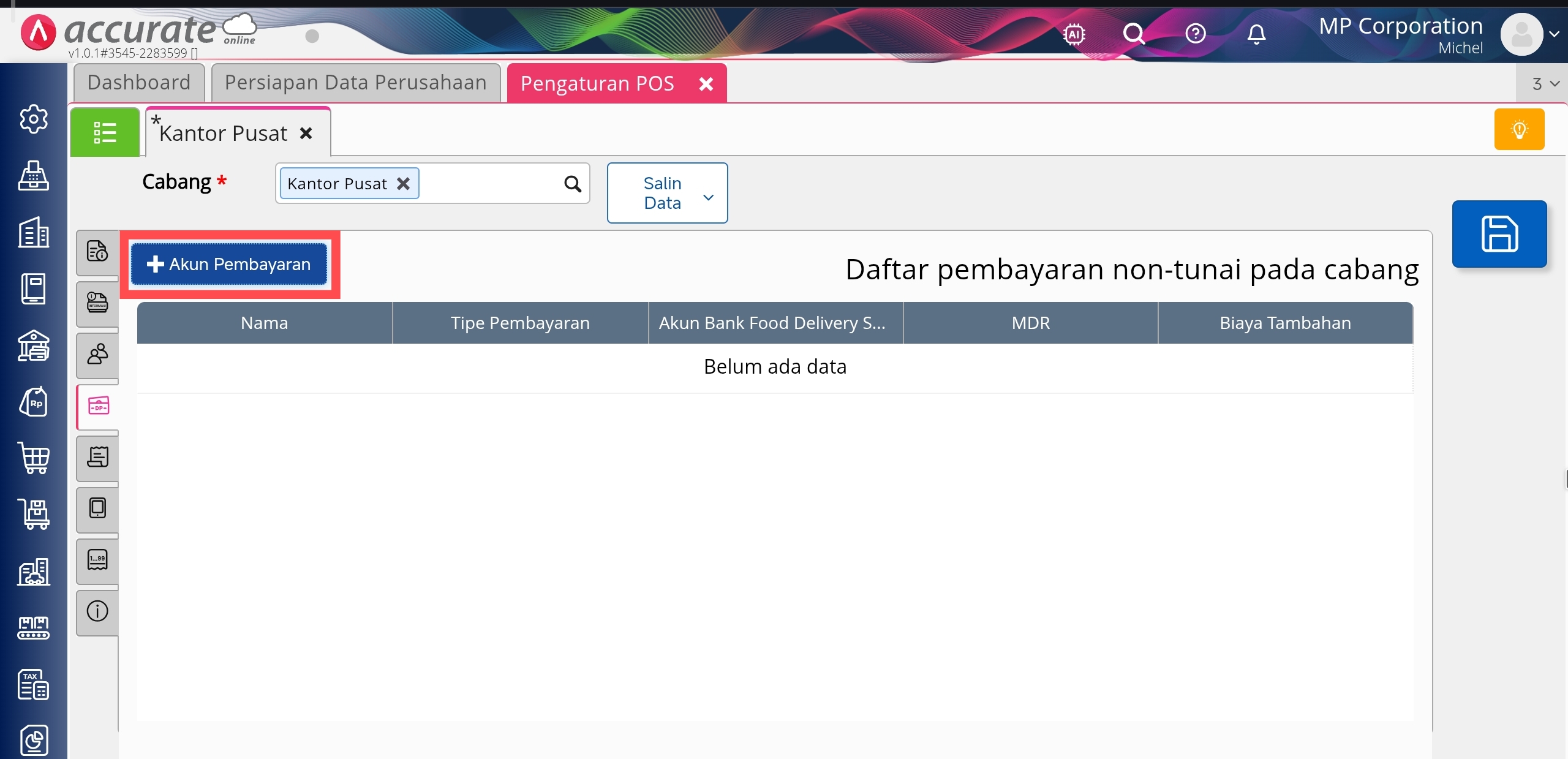- Klik tanda ( + ) pada Akun & Pembayaran untuk menambahkan Pembayaran Non-Tunai pada Pengaturan POS tersebut.