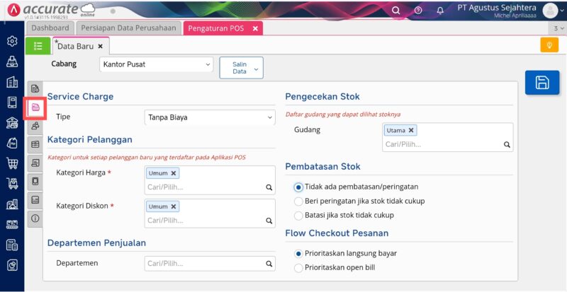 • Pembatasan Stok : pilih Pengaturan bagaimana sistem merespon jika terdapat stok barang tidak mencukupi.