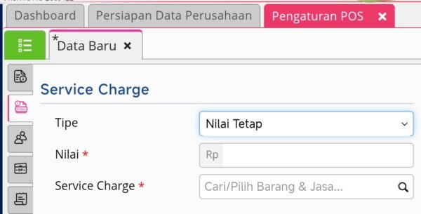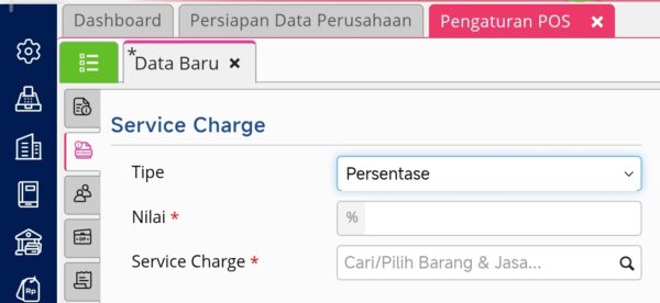 • Nilai : diisikan dengan nilai servis yang dikenakan ke pelanggan, yang diisikan sesuai dengan tipe service charge anda.