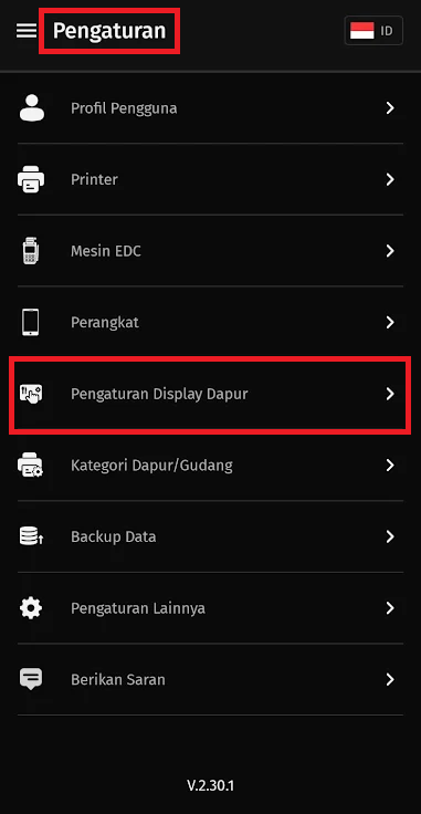 Pengaturan Display Dapur