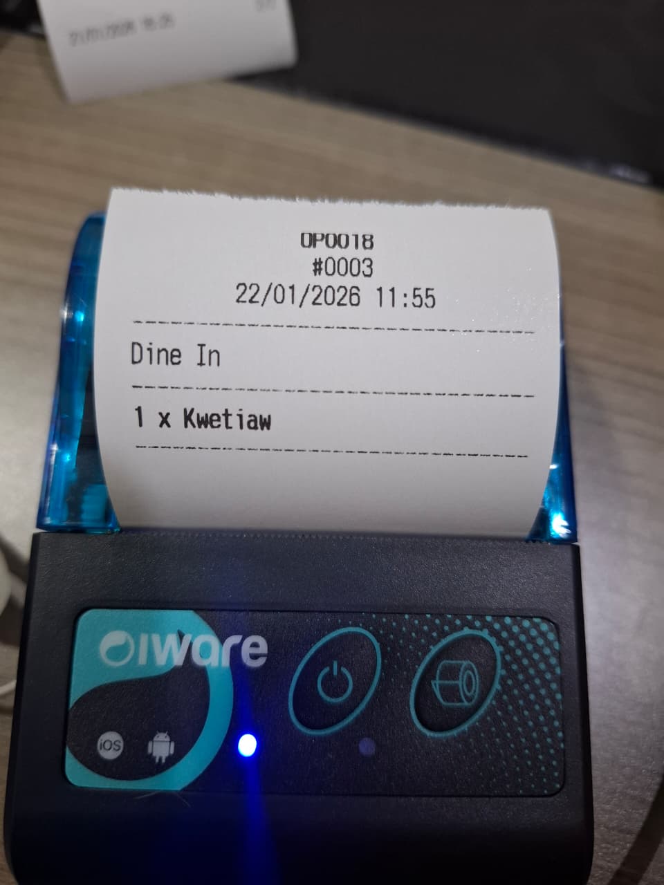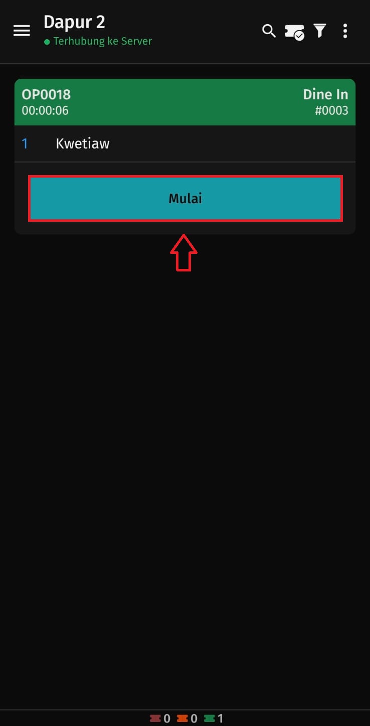 6. Maka, apabila Anda klik Mulai pada tiket pesanan yang tampil, printer akan otomatis mencetak menu yang perlu dibuat.