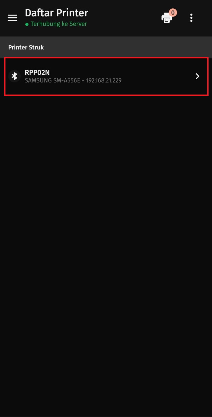 4. Pilih jenis printer, misal Bluetooth dan akan tampil printer Bluetooth yang telah dihubungkan ke smartphone anda.