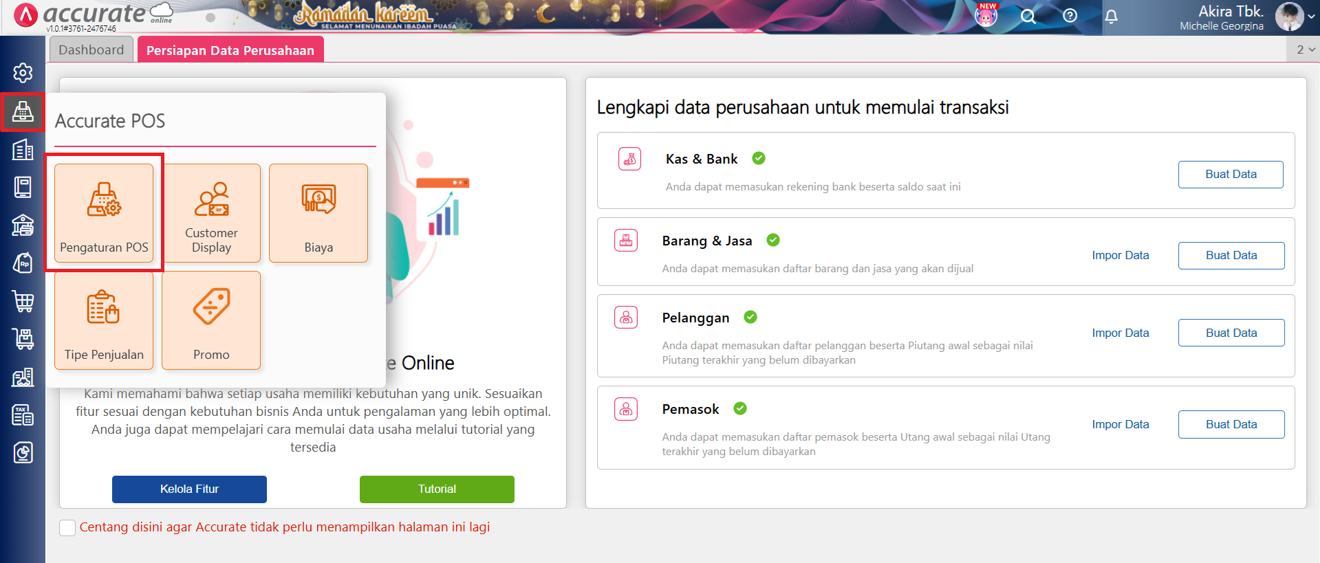 - Akses ke menu Accurate POS | Pengaturan POS.