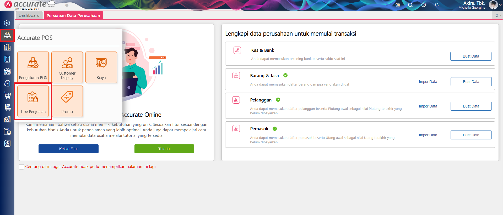 Sebelum menggunakan fitur Tipe Penjualan di Accurate POS, Anda perlu melakukan pengaturan pada database Accurate Online Anda. Berikut langkah-langkahnya :