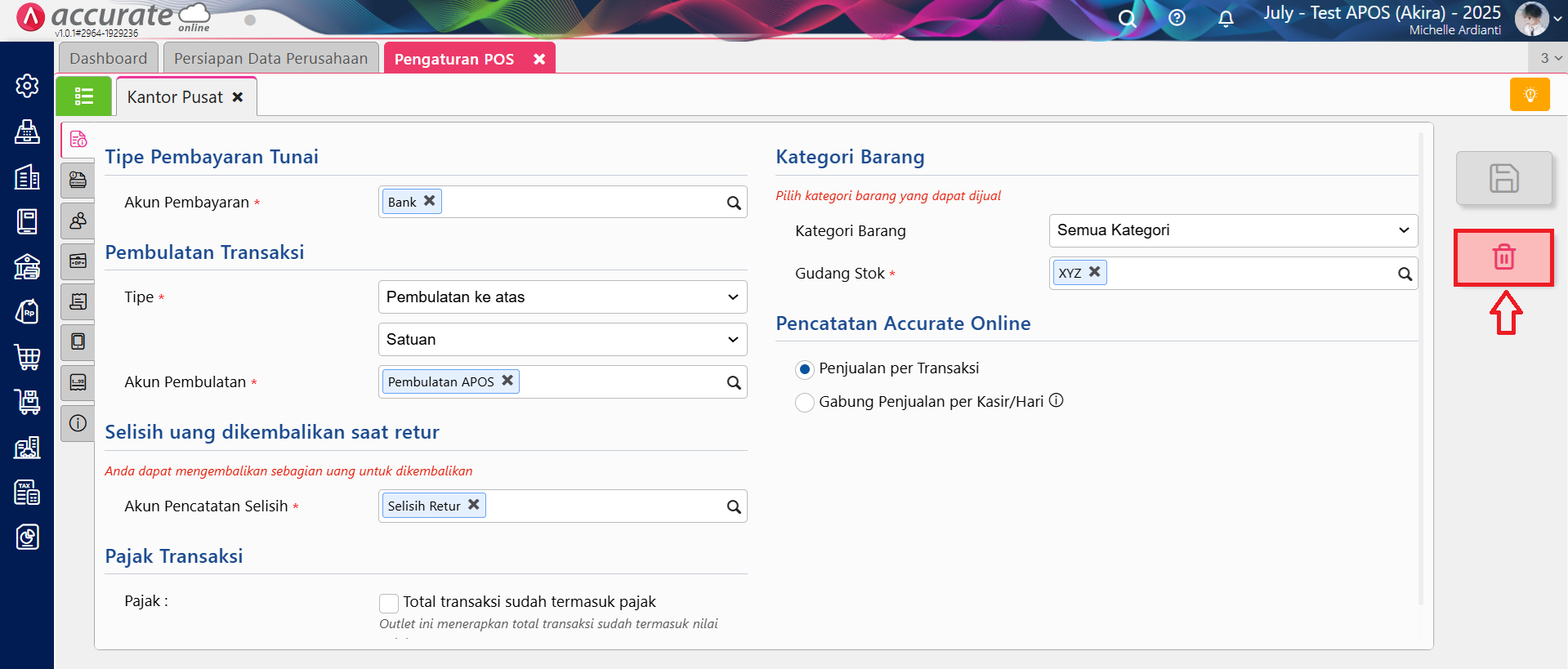 Jika ada salah satu outlet bisnis Anda yang sudah tidak beroperasi, sehingga tidak ada kegiatan operasional penjualan dan Anda memutuskan untuk berhenti berlangganan Accurate POS untuk outlet tersebut. Langkah yang bisa Anda lakukan adalah dengan cara menghapus outlet Accurate POS tersebut melalui menu Pengaturan POS di data usaha Accurate Online.