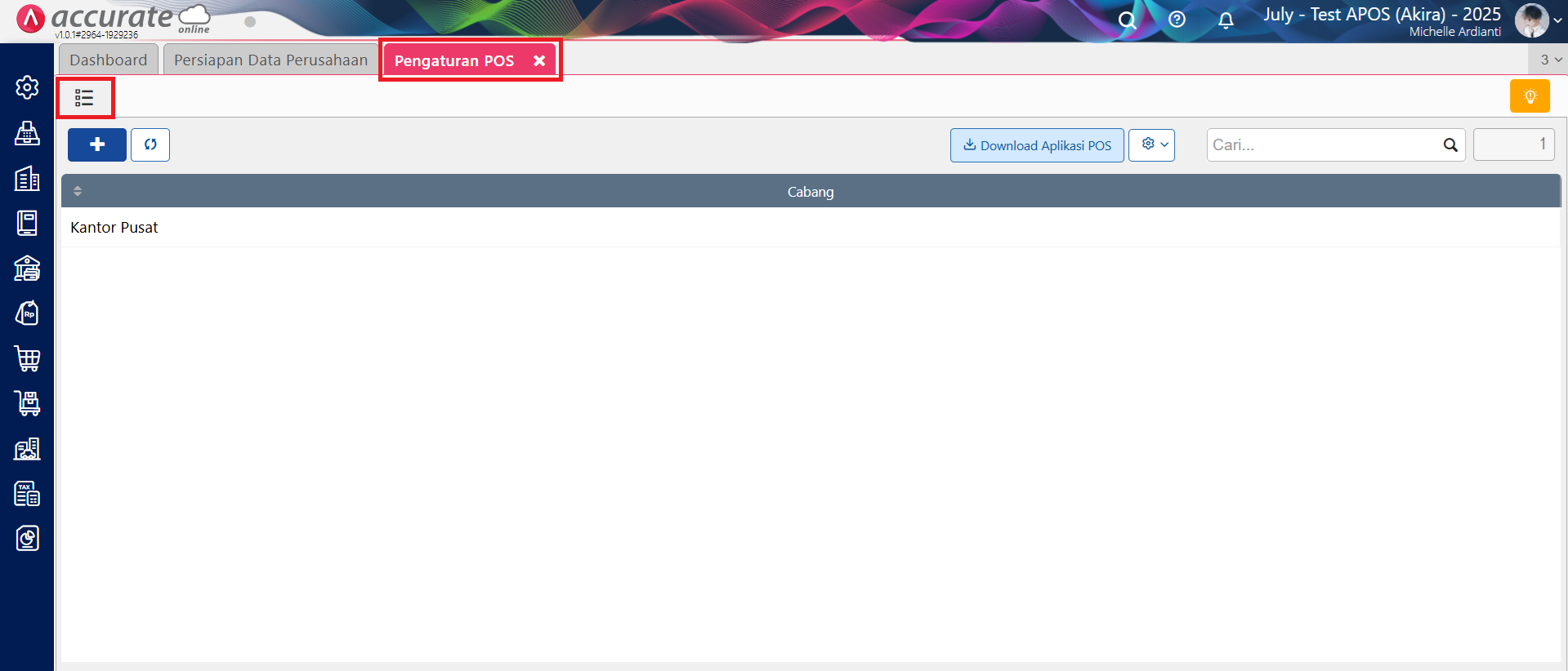 - Buka database Accurate Online anda, kemudian masuk ke menu Accurate POS | Pengaturan POS.