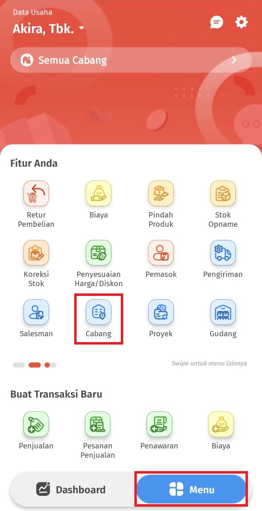 - Buka menu Cabang yang ada pada halaman menu Accurate Lite.