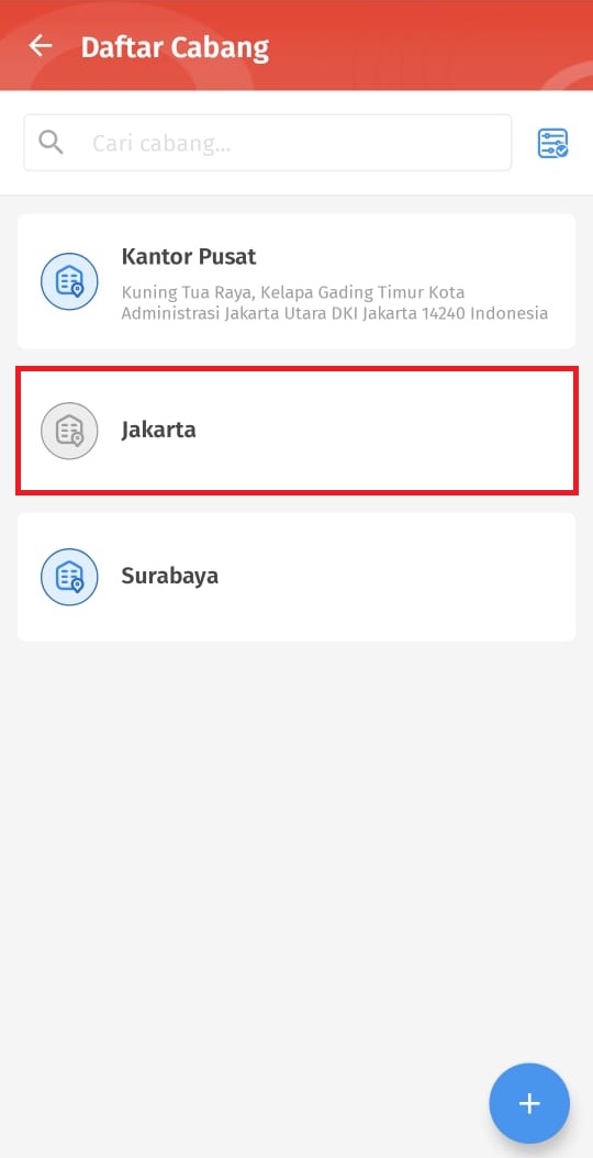 - Pada halaman Daftar Cabang, pilih cabang yang akan diaktifkan kembali.
