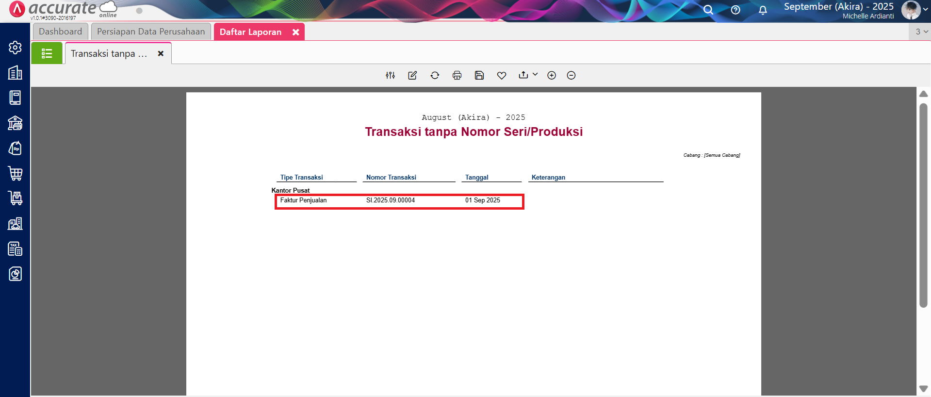 Laporan Transaksi Tanpa Nomor Seri/Produksi