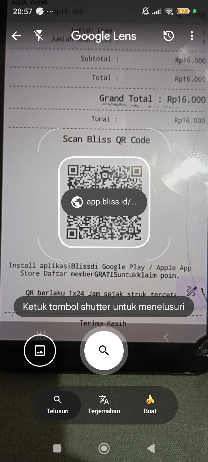 - Apabila ada pelanggan Non Bliss yang ingin bergabung menjadi member, maka pelanggan tersebut bisa scan Bliss QR Code yang tampil pada struk transaksi.
