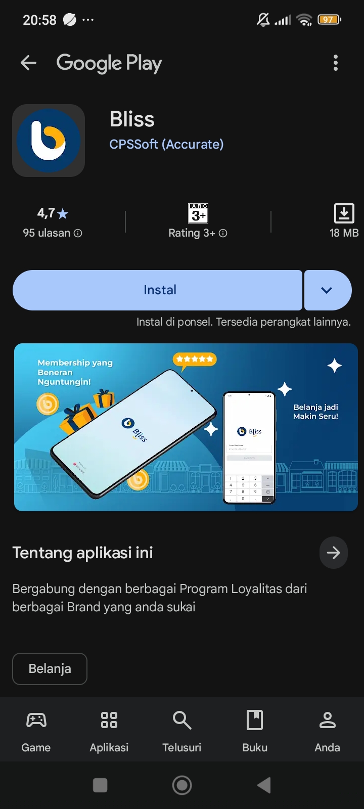 Tampilan install aplikasi Bliss
