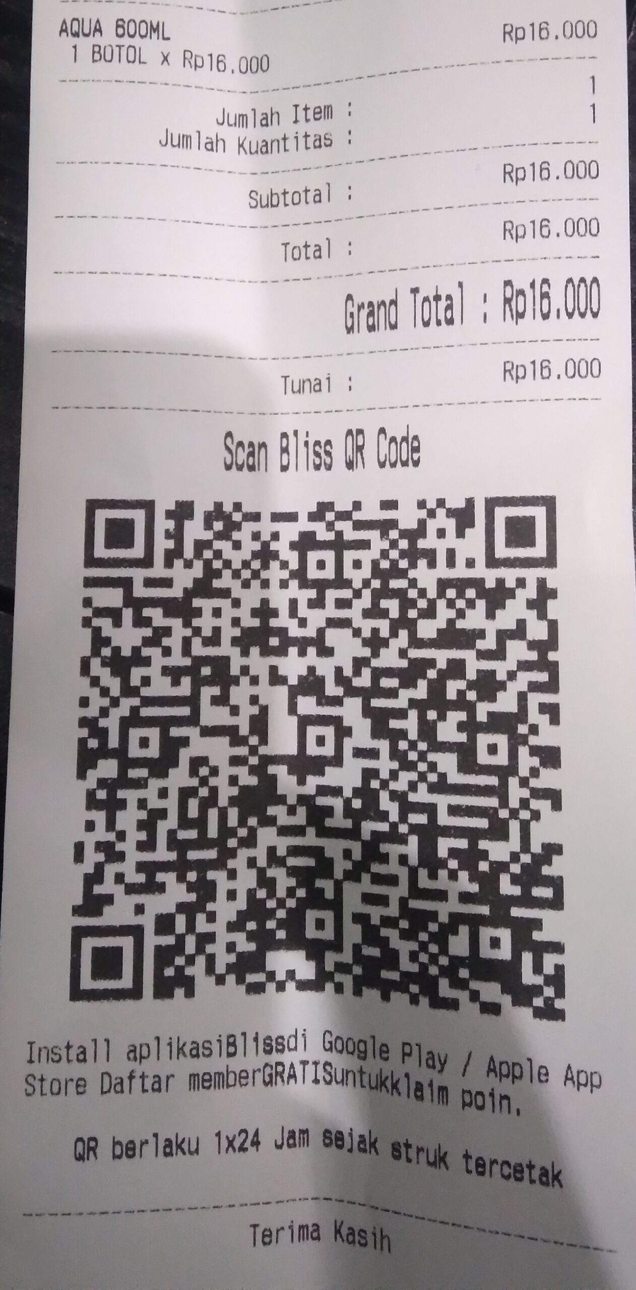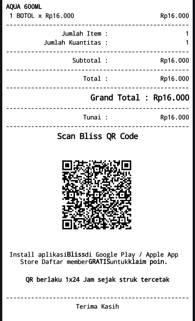 Tampilan Bliss QR Code pada hasil cetak struk
