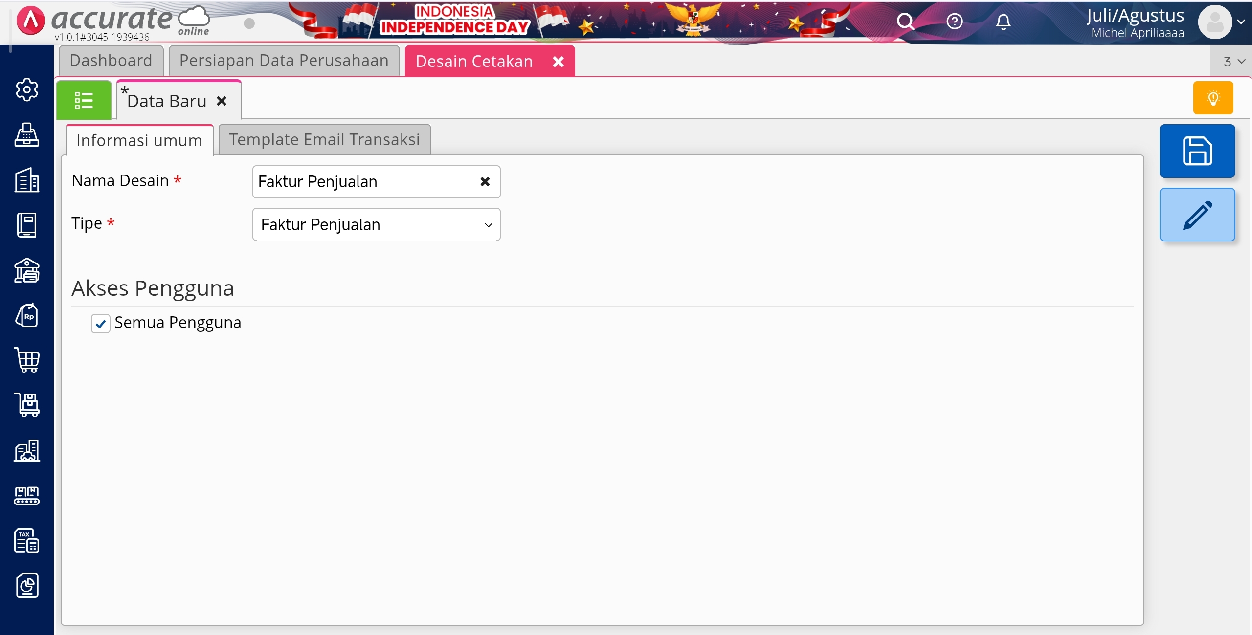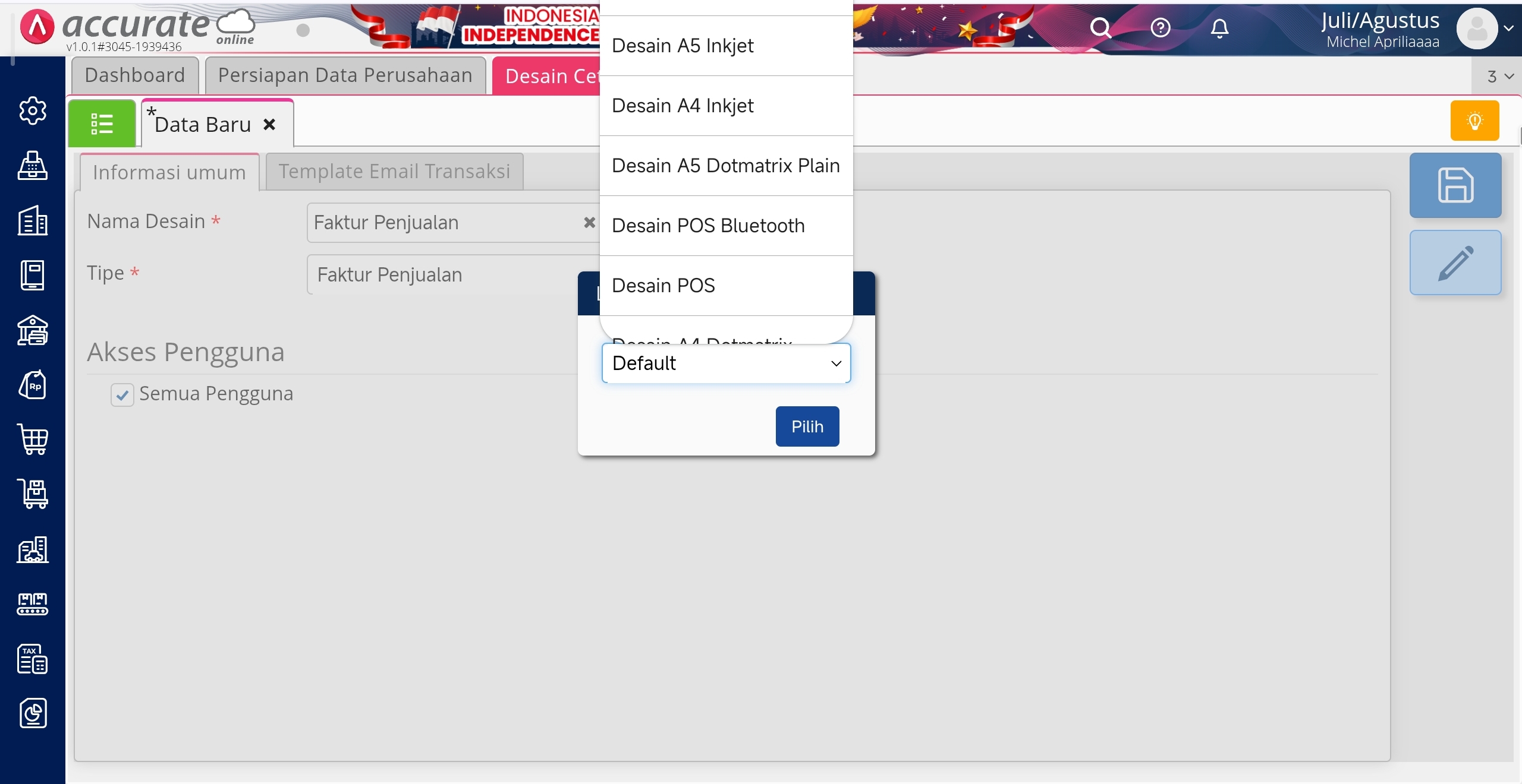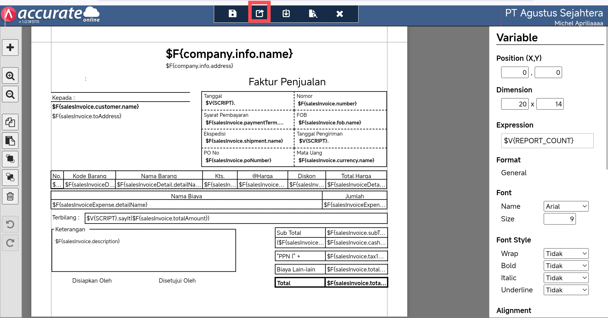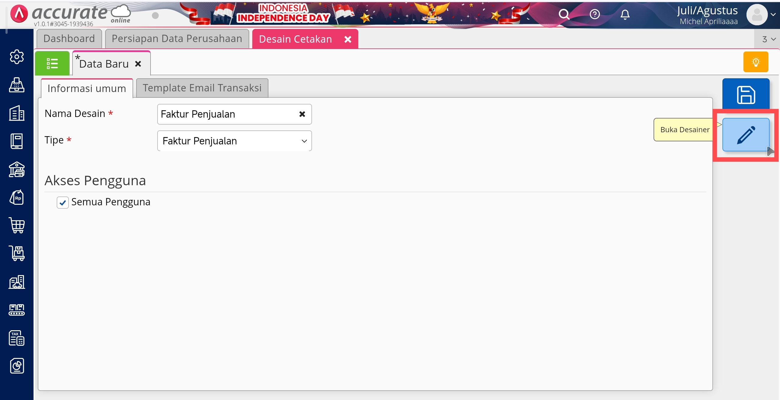 - Kemudian klik buka desainer untuk template faktur penjualan tsb.