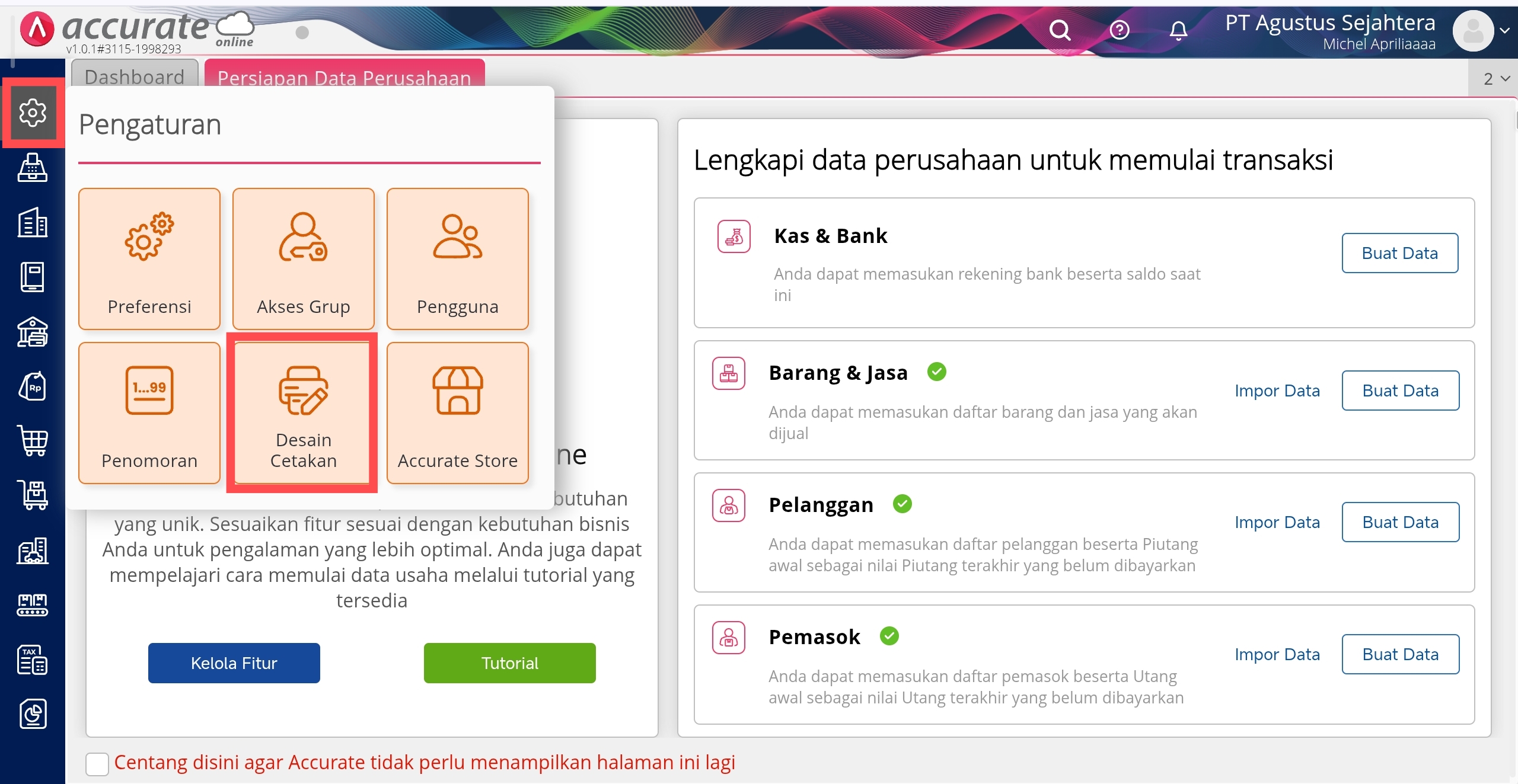 Akses Desain Cetakan di Menu Pengaturan