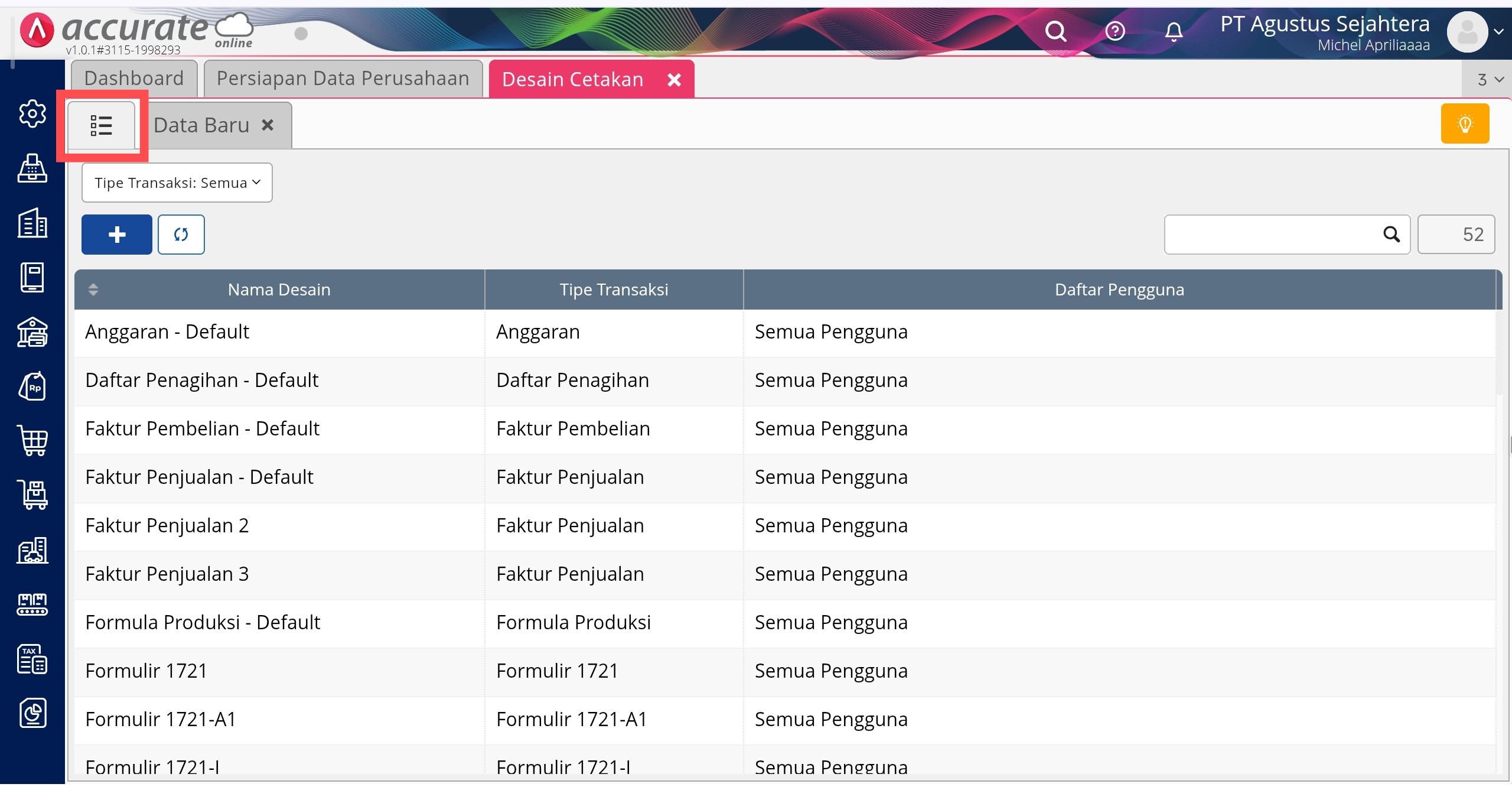 - Ke menu Pengaturan | Desain Cetakan, lalu buka daftar desain cetakan.