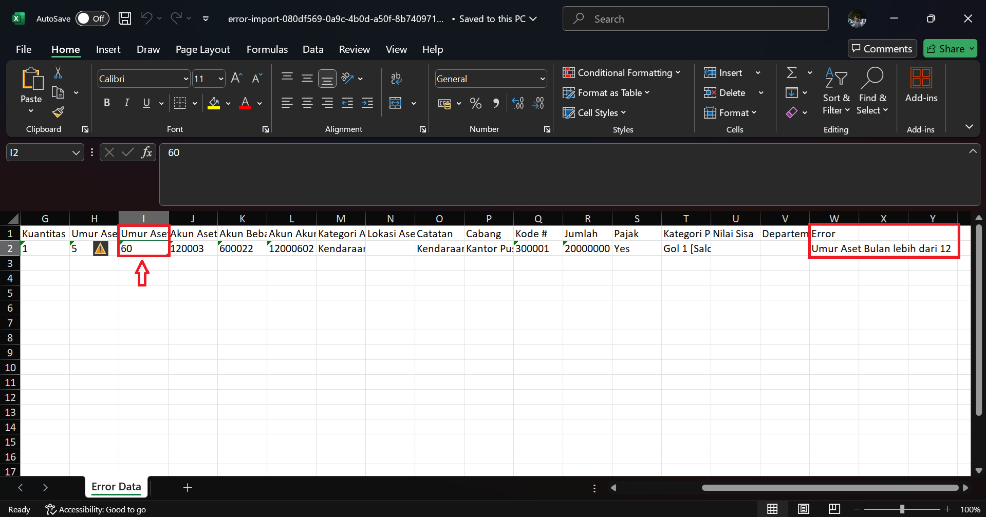 Eror Impor Aset Tetap dari File Excel