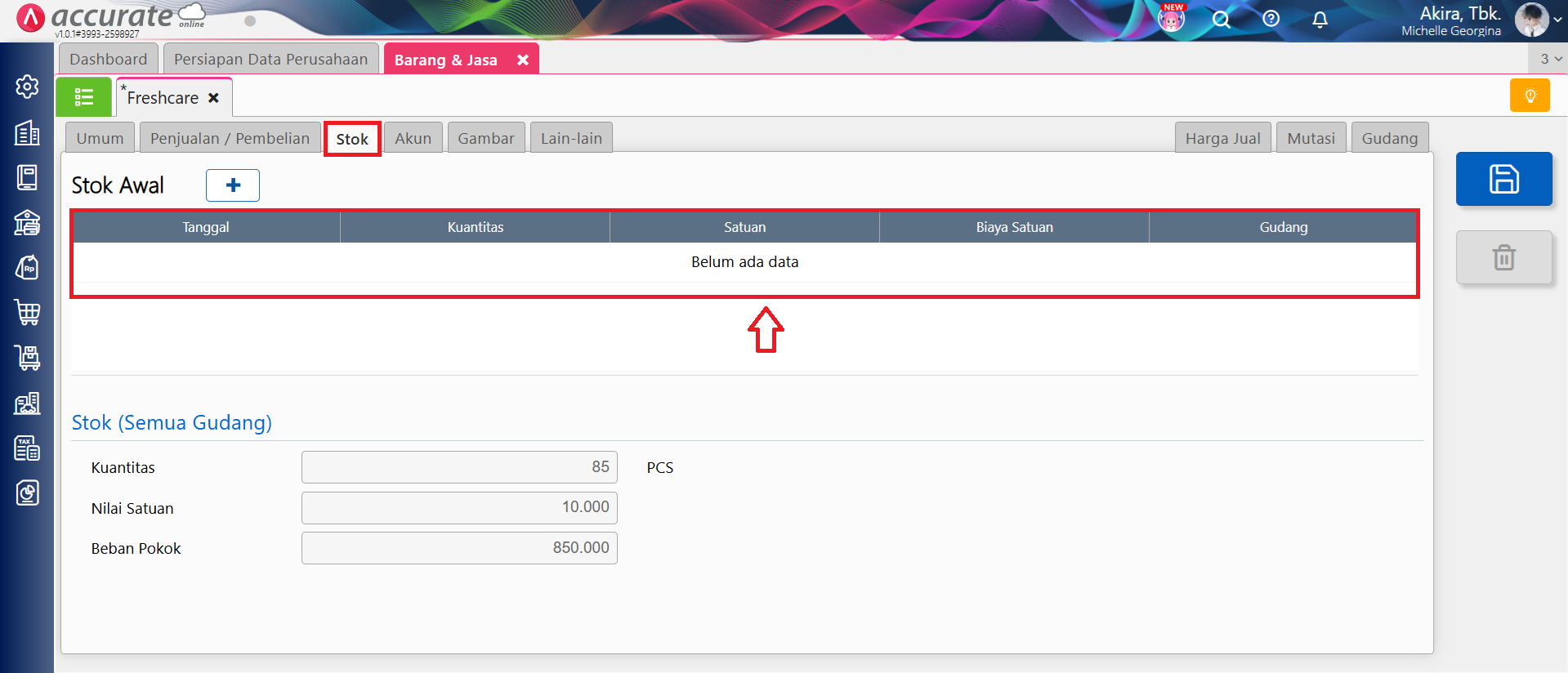 - Apabila barang tersebut sudah digunakan dalam Saldo Awal, maka lakukan pengecekan dengan cara ke menu Persediaan | Barang & Jasa | Pilih Barang | Stok | Stok Awal.