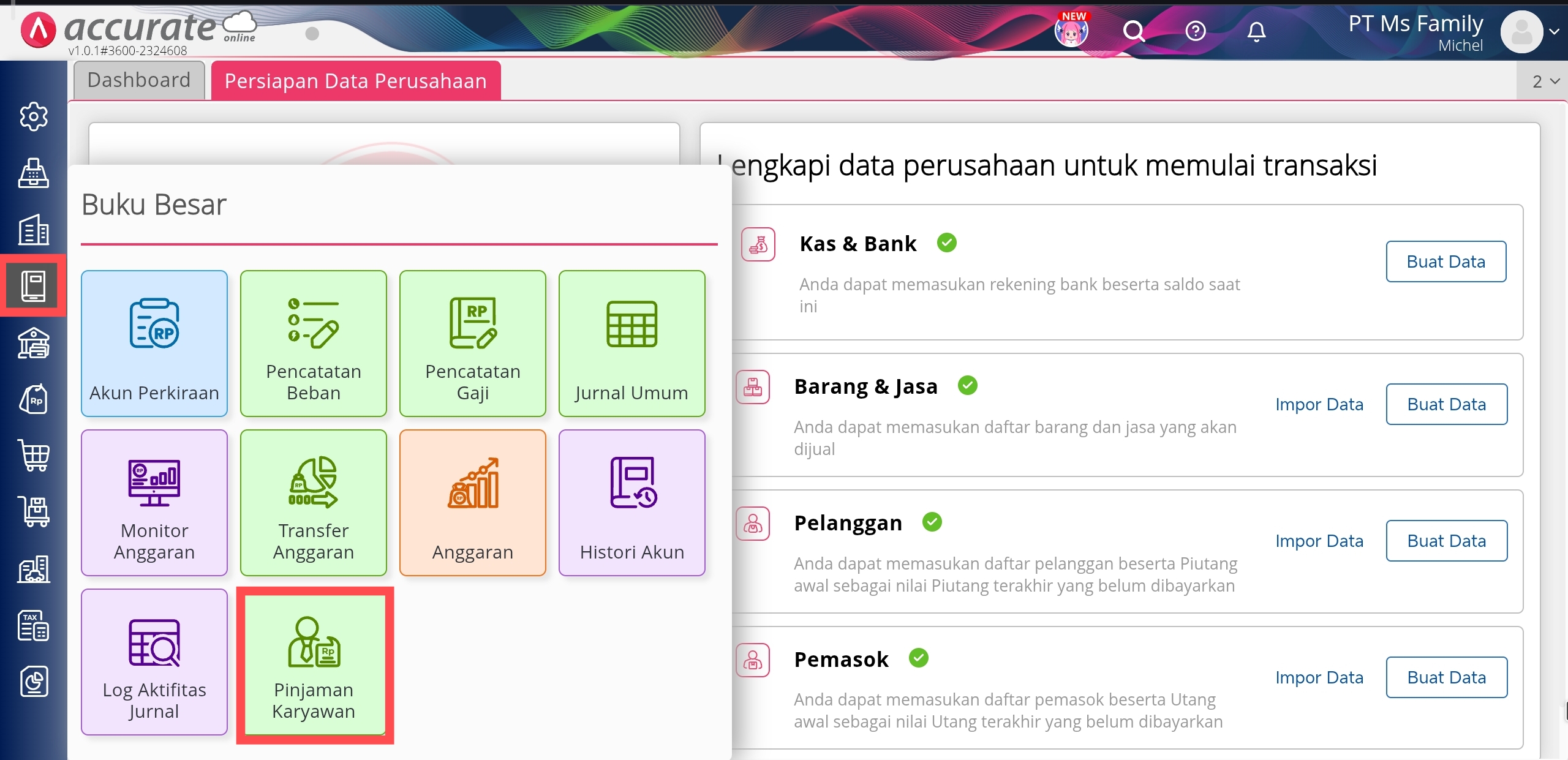 Pinjaman Karyawan di menu Buku Besar