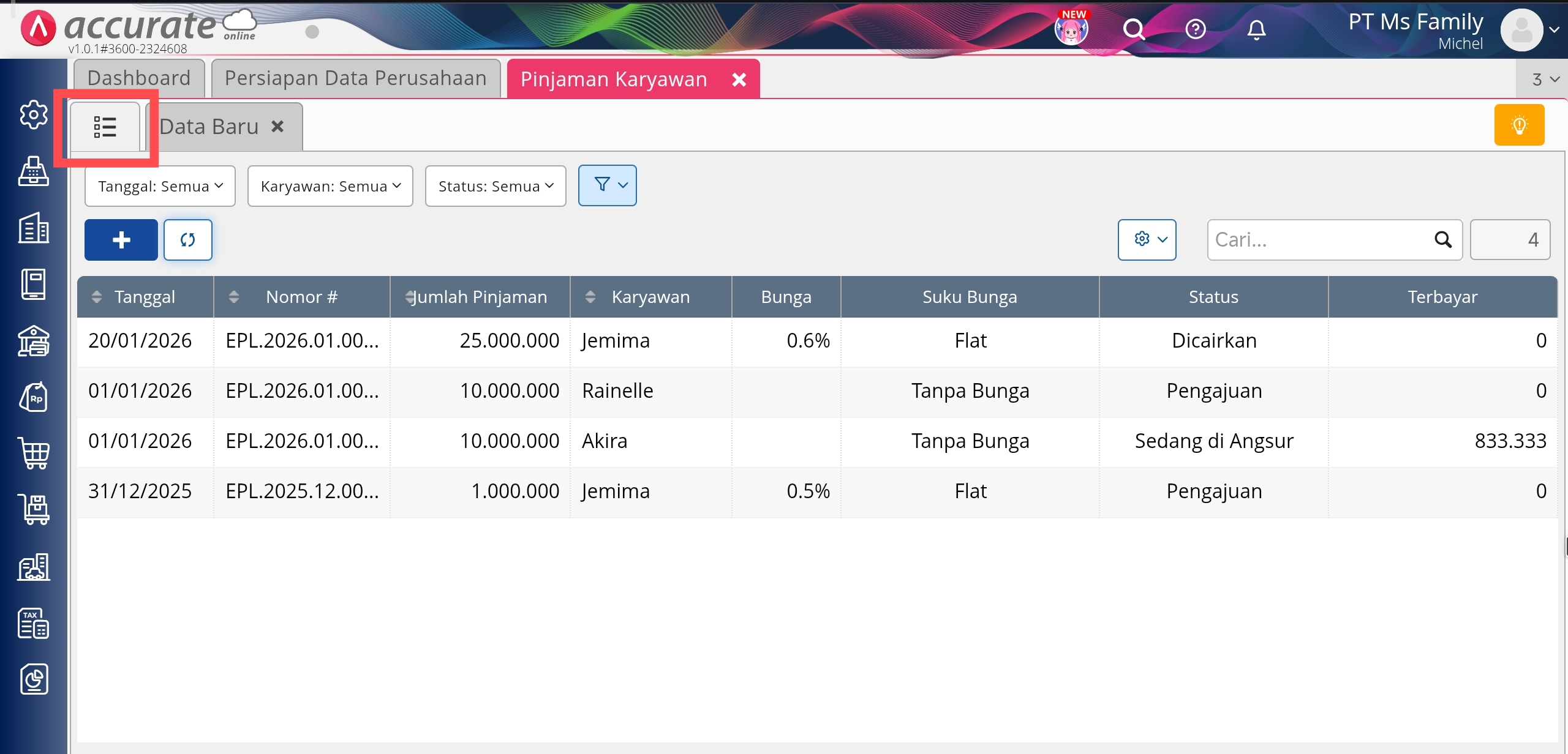 Daftar Pinjaman Karyawan