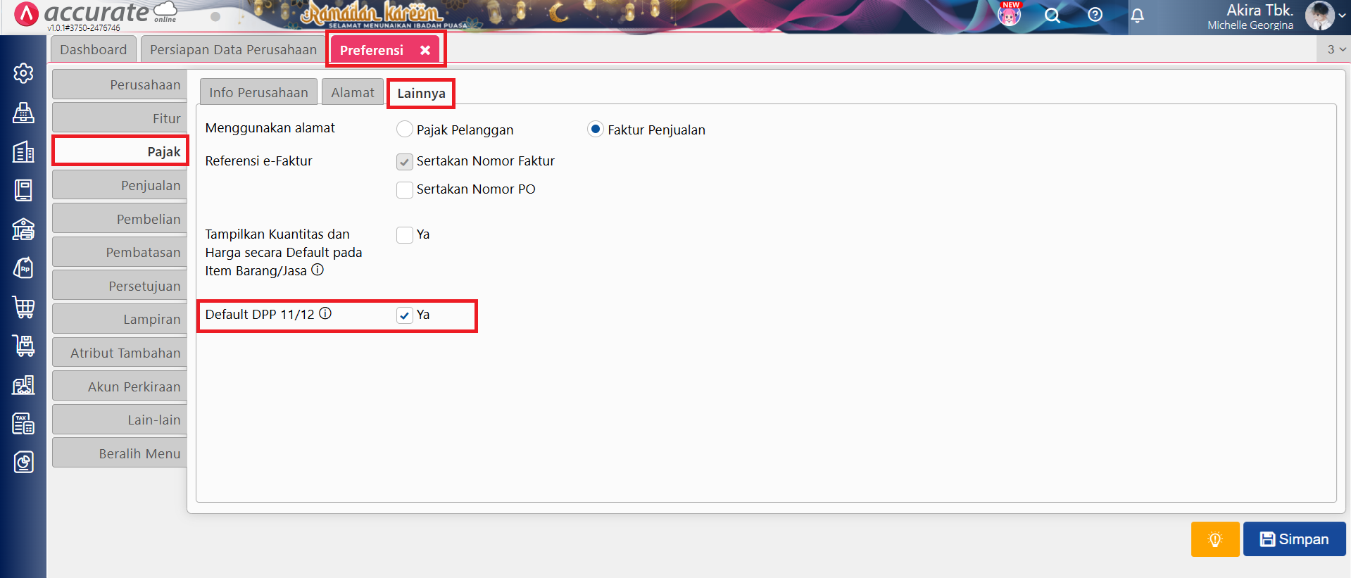 Hal ini disebabkan karena pada menu Pengaturan | Preferensi | Pajak | Lainnya, Anda melakukan centang fitur Default DPP 11/12.