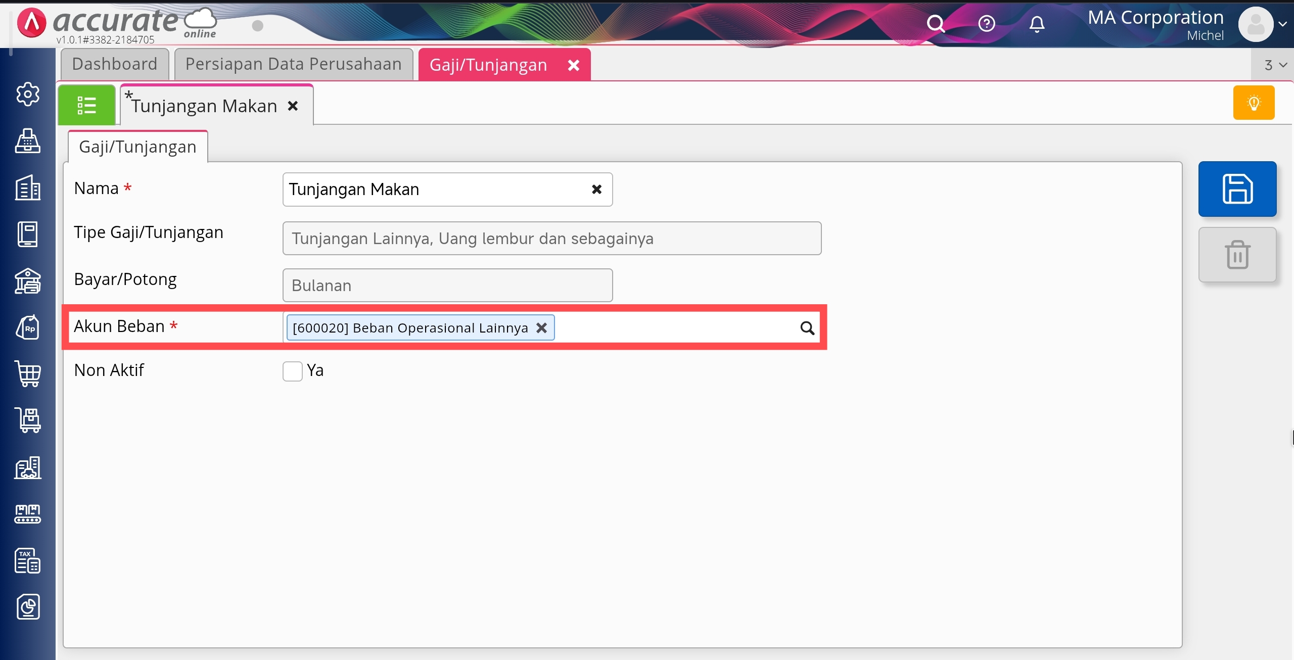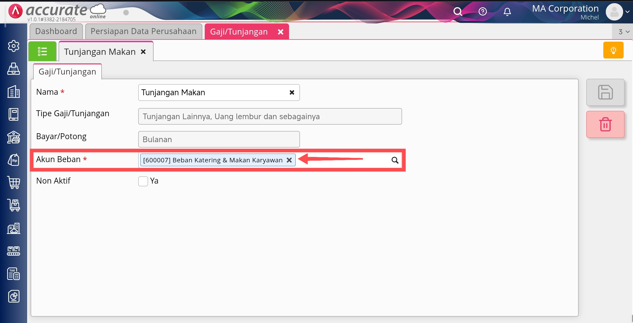Solusi: untuk bisa menghapus akun tersebut, Anda perlu menghapusnya terlebih dahulu dari pengaturan Akun Beban pada bagian Gaji/Tunjangan.