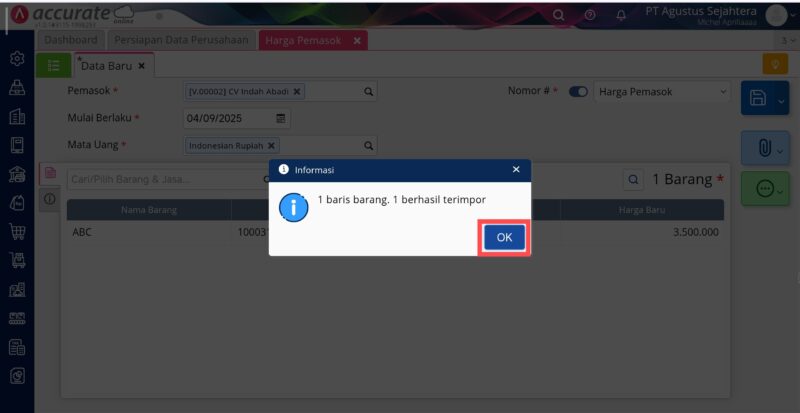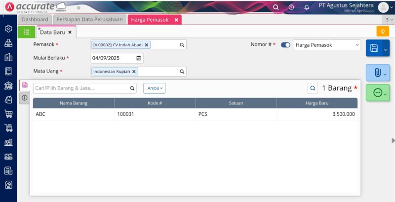 Note : fitur Harga Pemasok ini berfungsi dalam penentuan harga beli atas barang dalam transaksi pembelian di Accurate online.