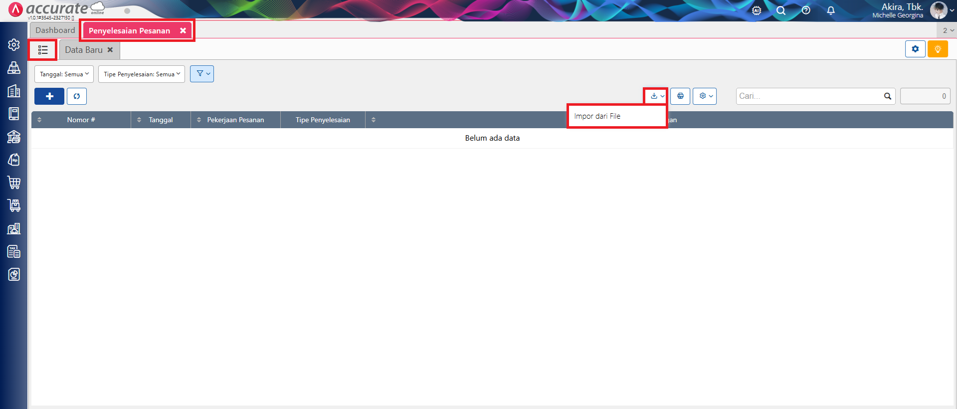 - Lalu ke Daftar Penyelesaian Pesanan | Impor Data, lalu klik Impor dari File.