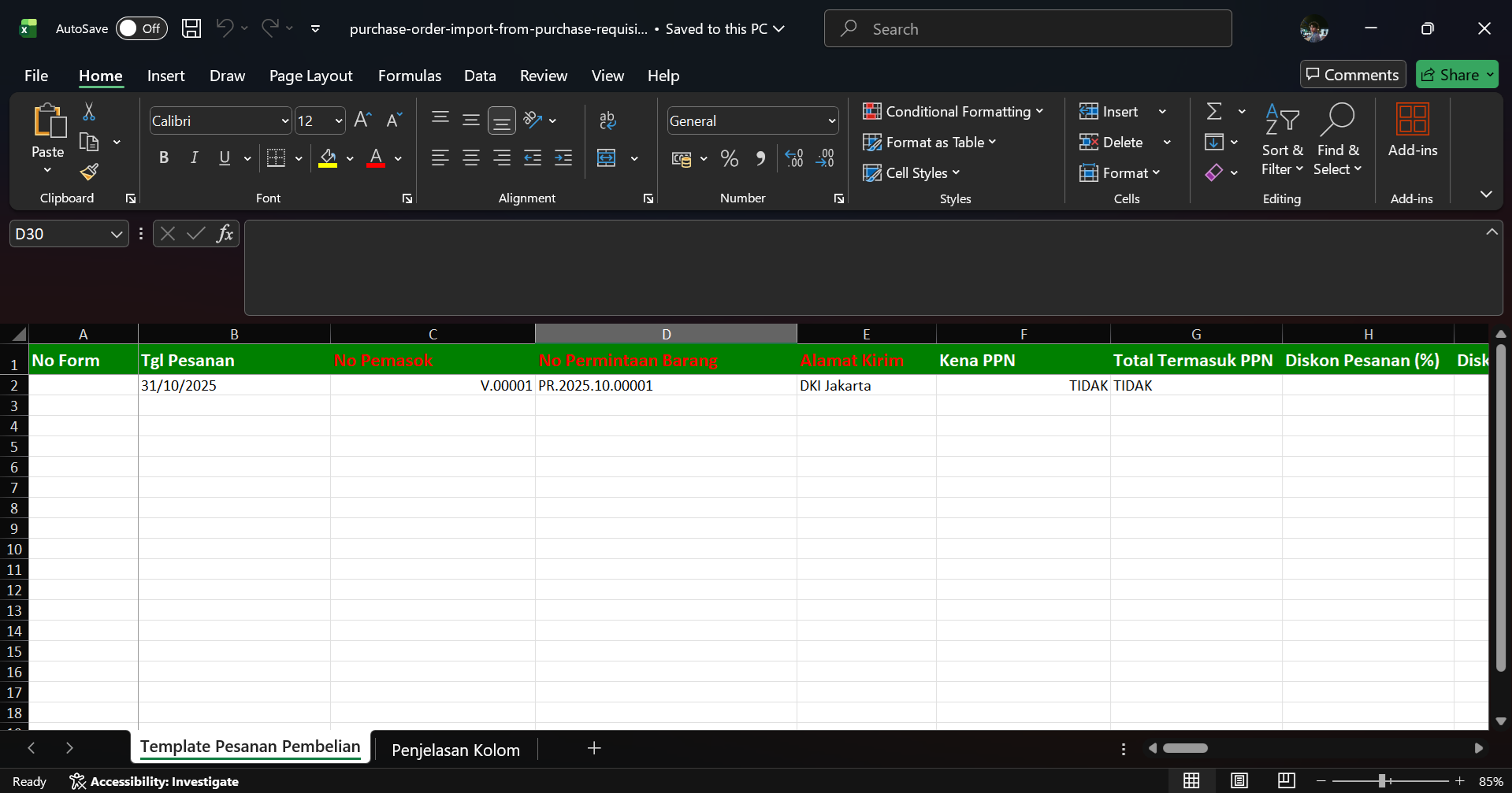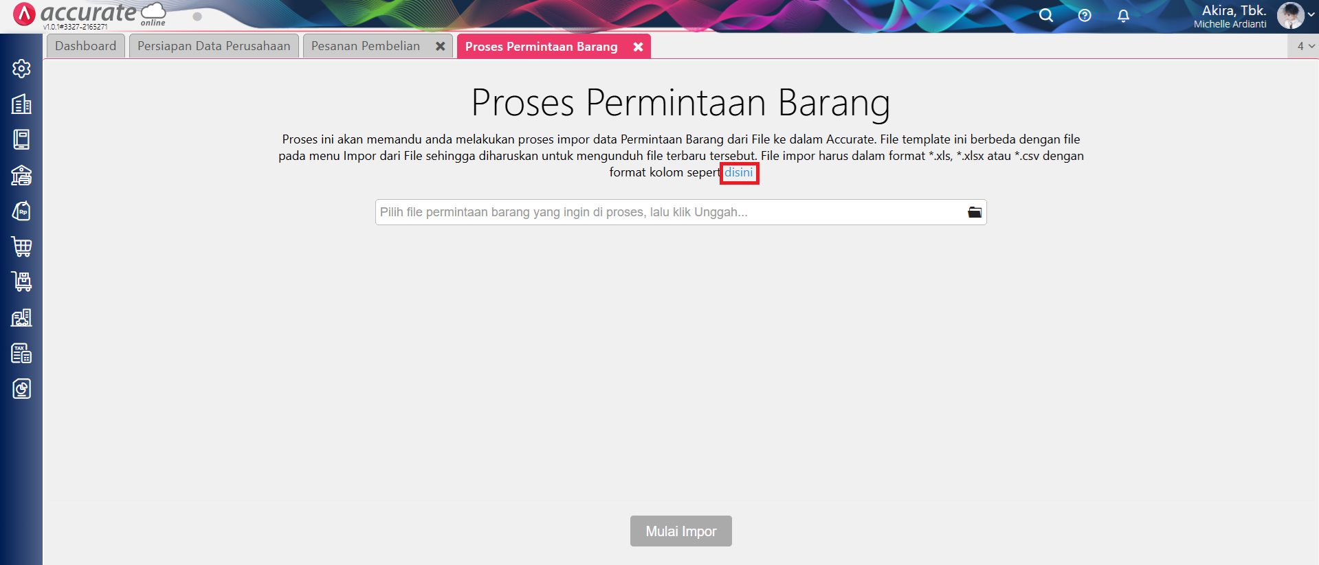 Unduh Contoh Format Impor Pesanan Pembelian dari Permintaan Barang