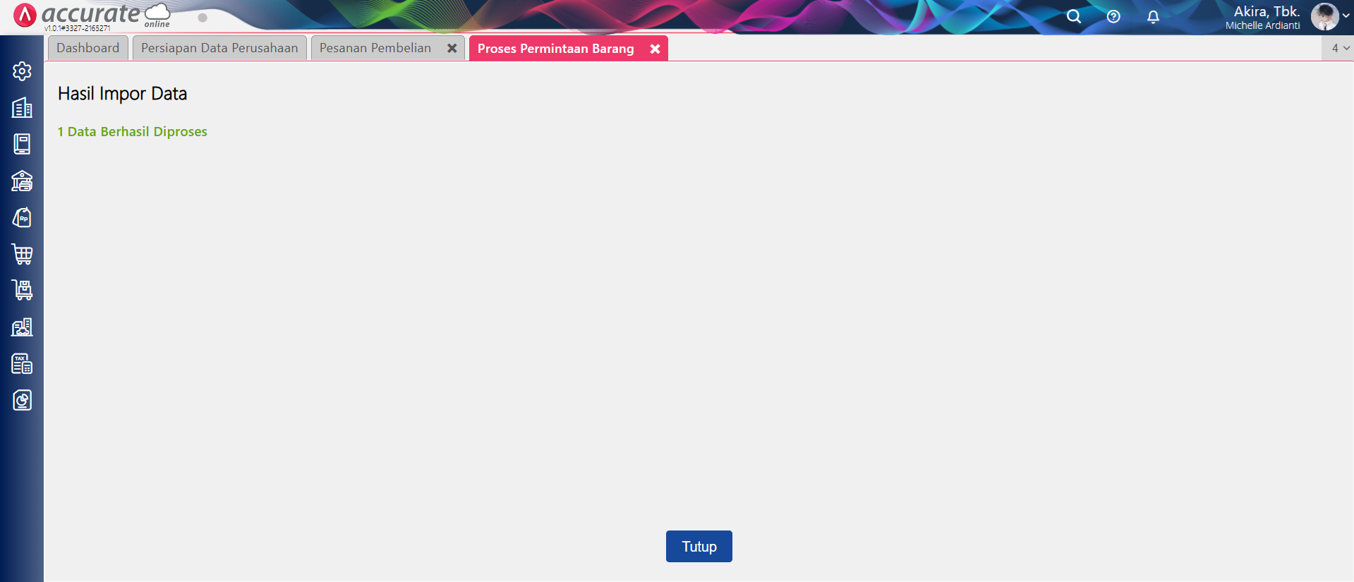 Klik informasi ‘Proses dari Permintaan Barang’ untuk melakukan proses impor