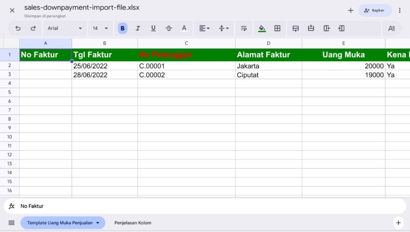 Unduh Contoh Format Impor Uang Muka Penjualan