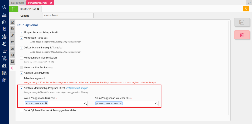 - Aktifkan dan lakukan pengaturan Fitur Bliss pada menu Pengaturan Accurate POS di database Accurate Online Anda. KLIK DISINI untuk panduannya.