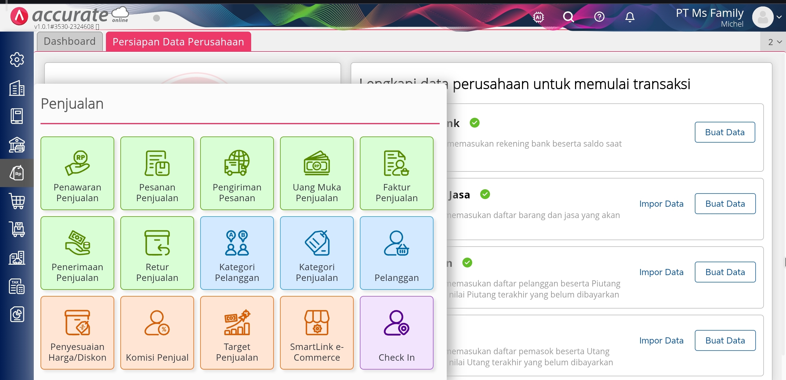 Navigasi yang pertama adalah Navigasi Akses Menu di Accurate Online.