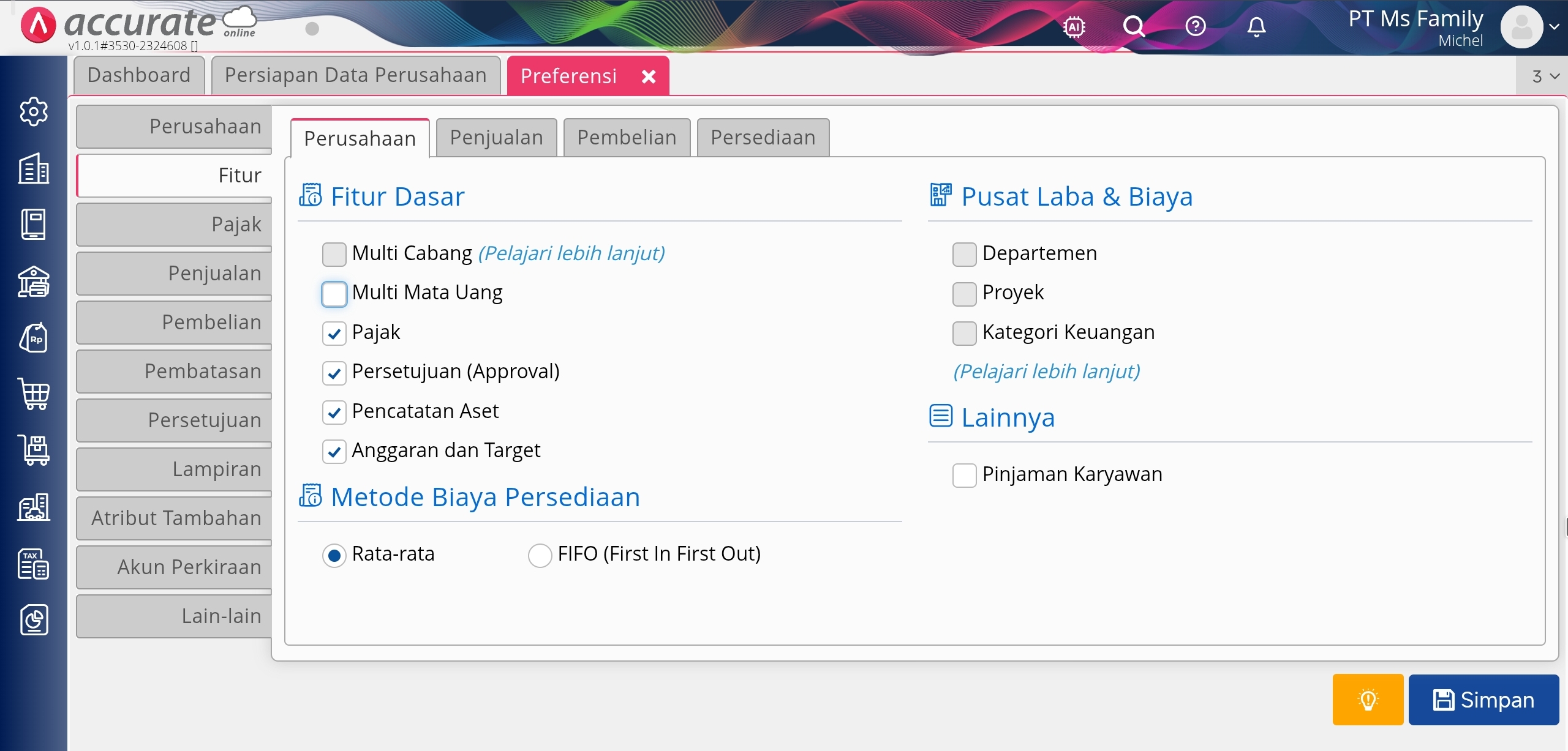 Fitur pada data usaha Accurate Online Anda, sewaktu-waktu bisa Anda lakukan pengaturan ulang melalui menu Pengaturan | Preferensi.