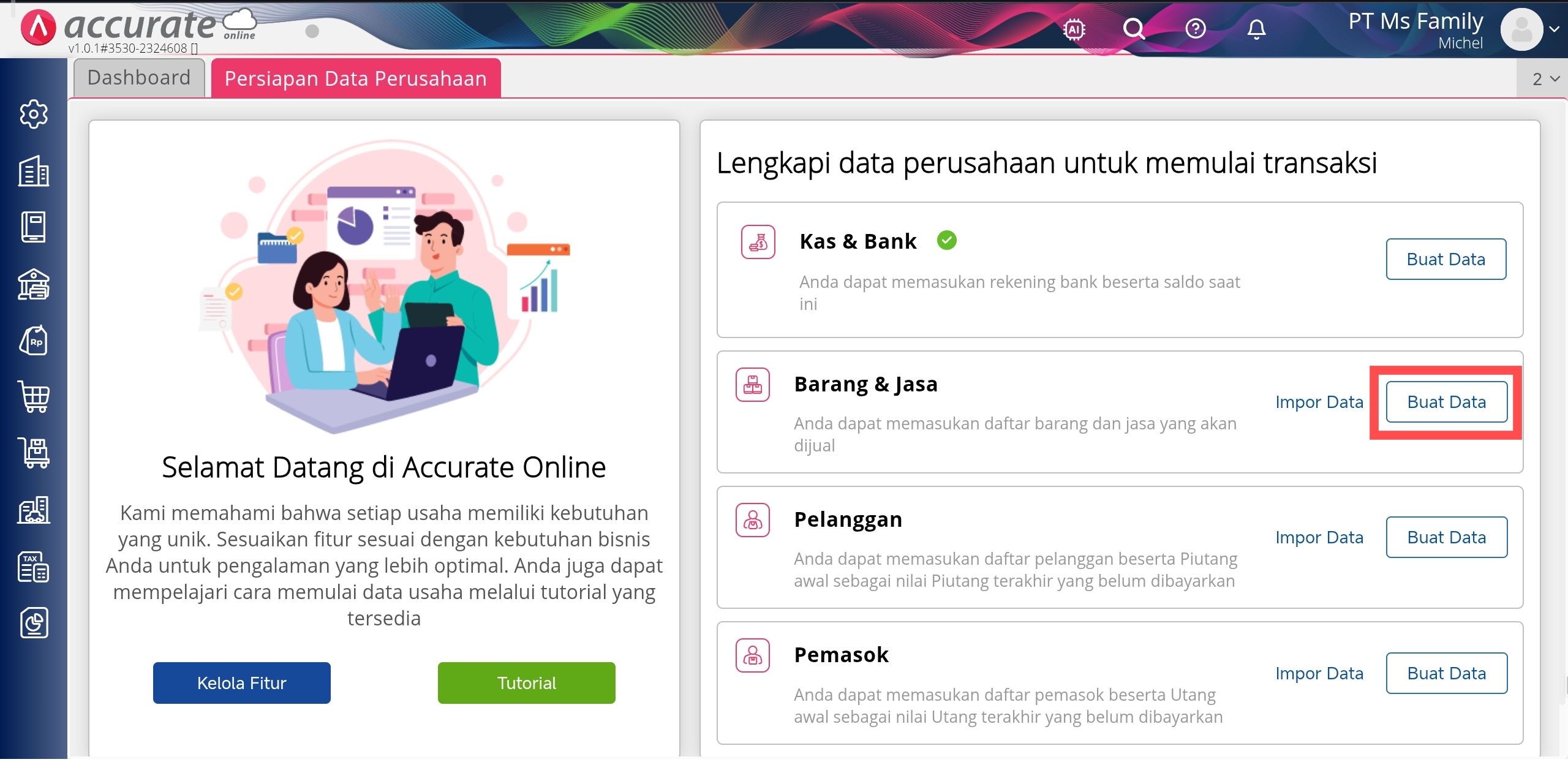 Buat Data Barang & Jasa di Persiapan Data Perusahaan