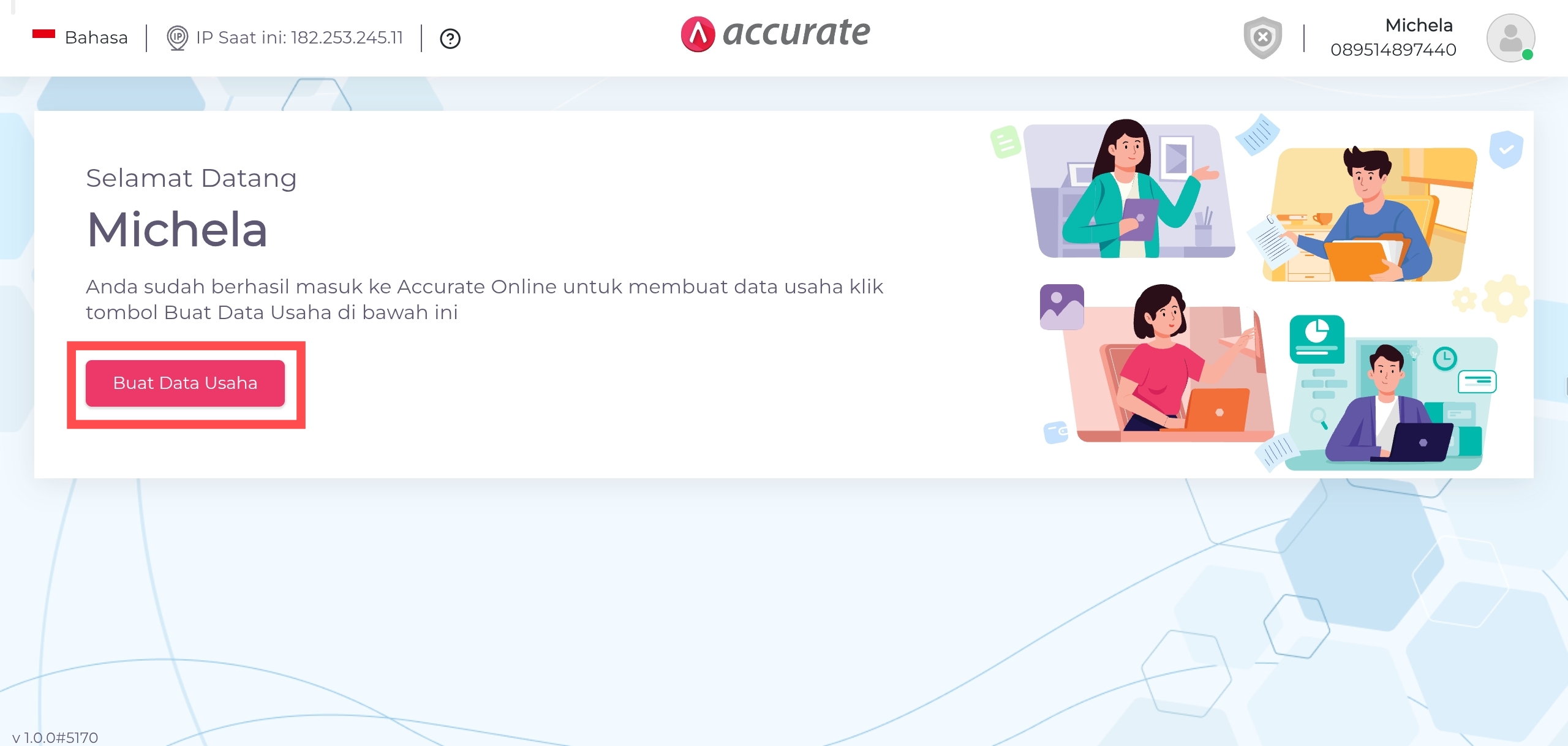 1. Pada halaman Accurate Online, klik ‘Buat Data Usaha’.