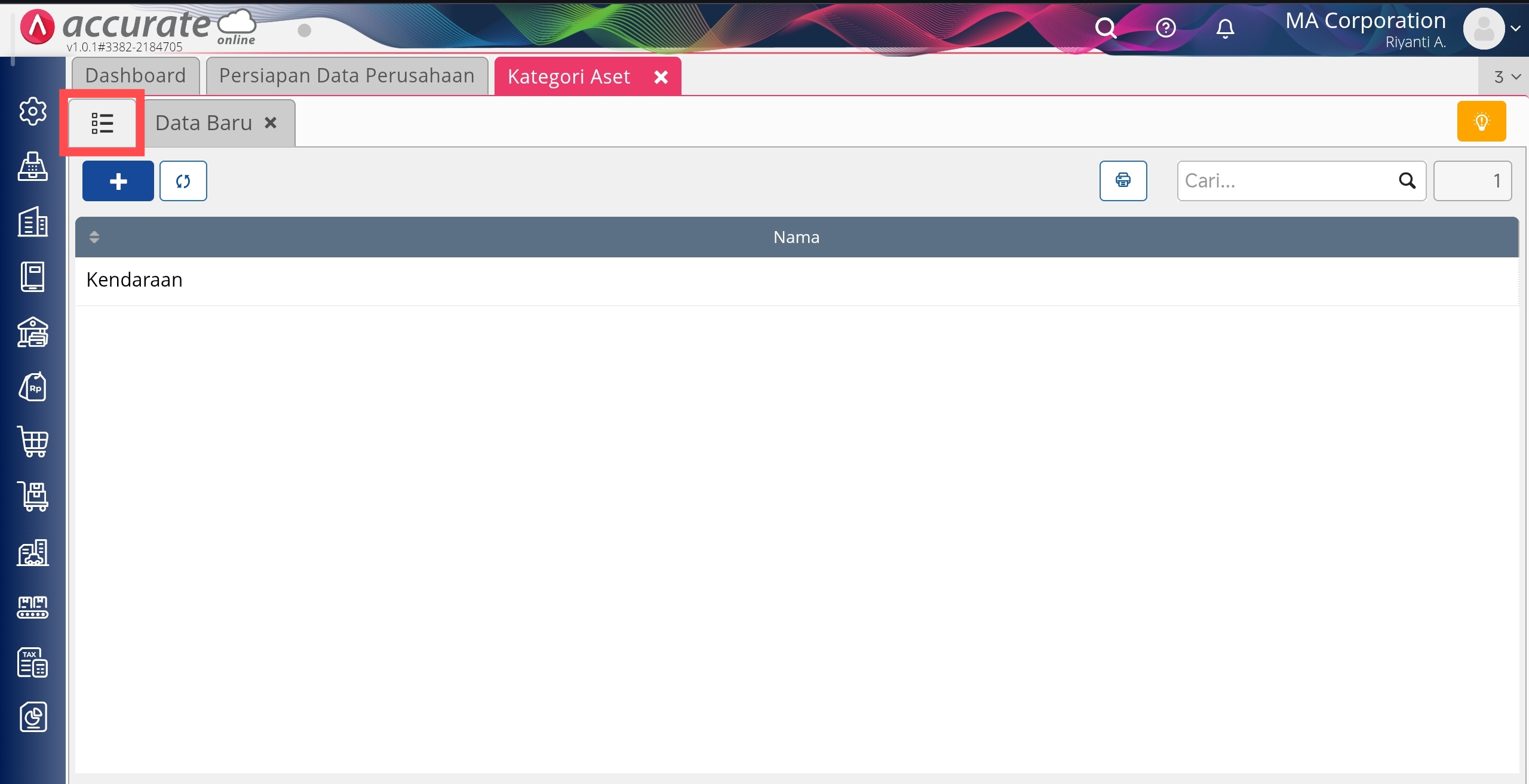 3. Untuk melihat daftar Kategori Aset yang telah Anda buat, klik gambar yang diberi lingkaran.