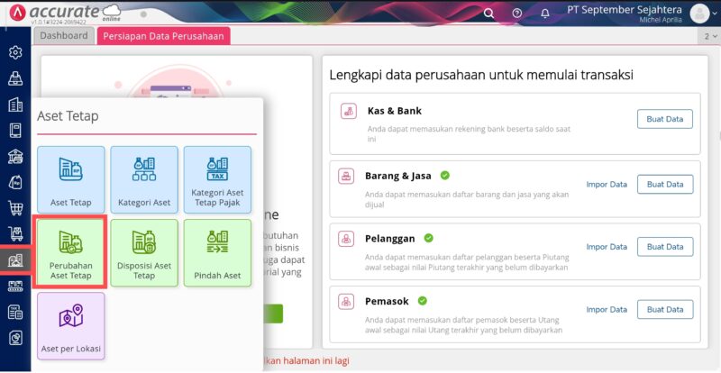 Akses Perubahan Aset Tetap di Menu Aset Tetap