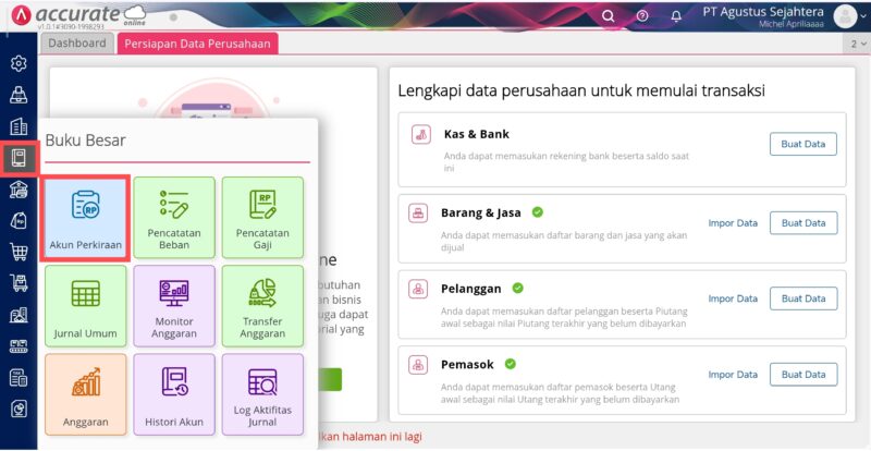 1. Klik menu Buku Besar | Akun Perkiraan.