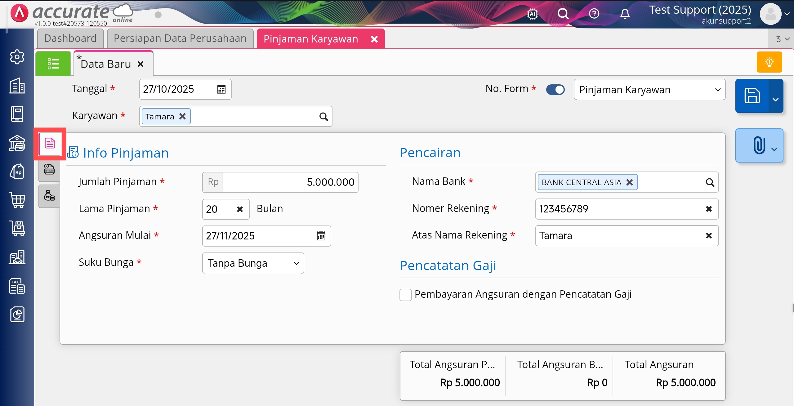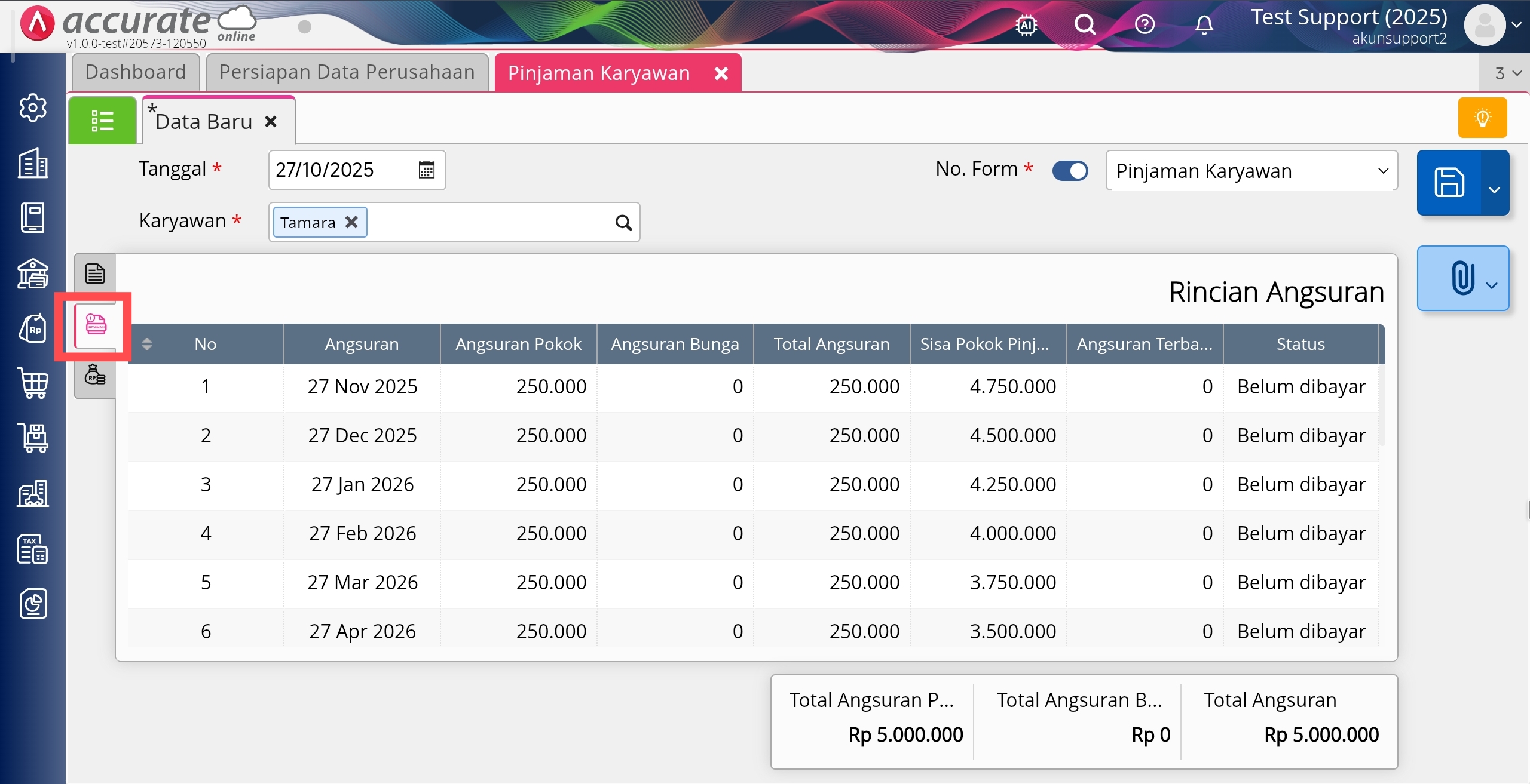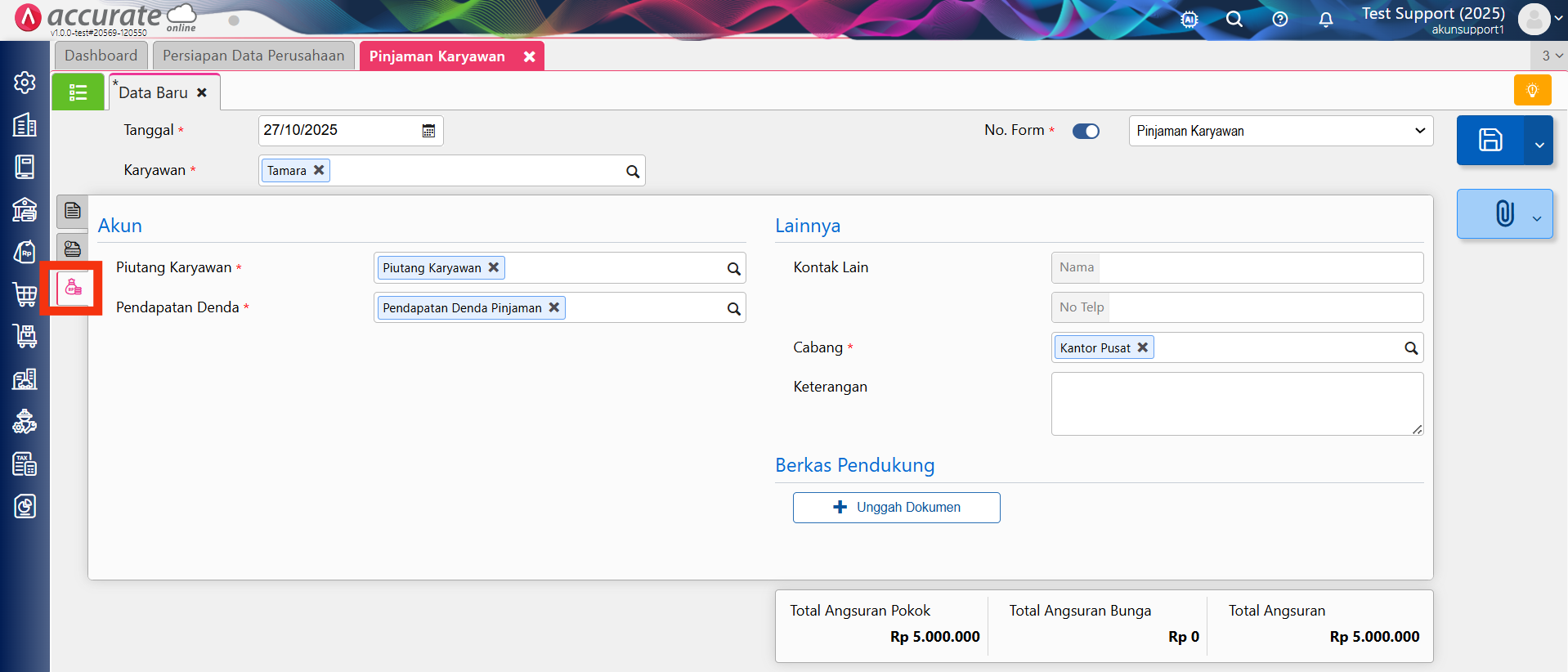 Fitur Pinjaman Karyawan di Menu Buku Besar