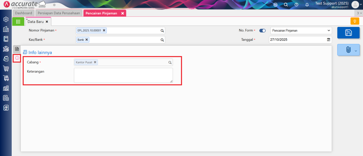 Tampilan tab Info Lainnya pada menu Pencairan Pinjaman