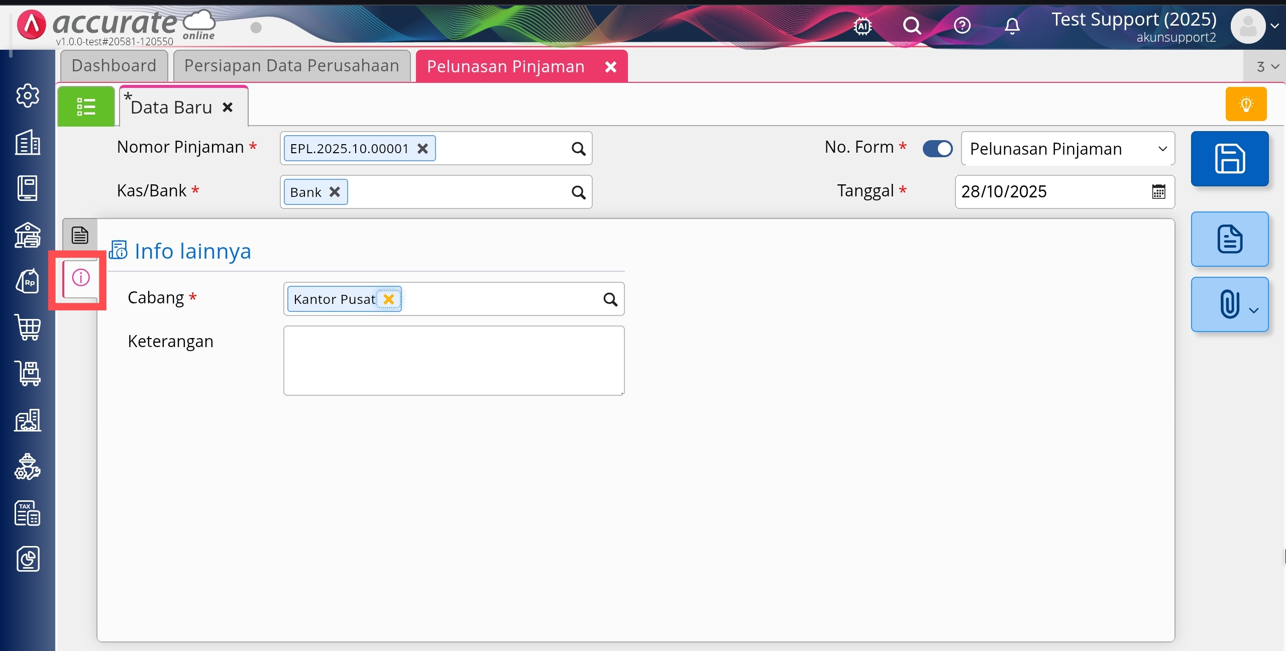 Buka Pelunasan Pinjaman di Menu Kas & Bank