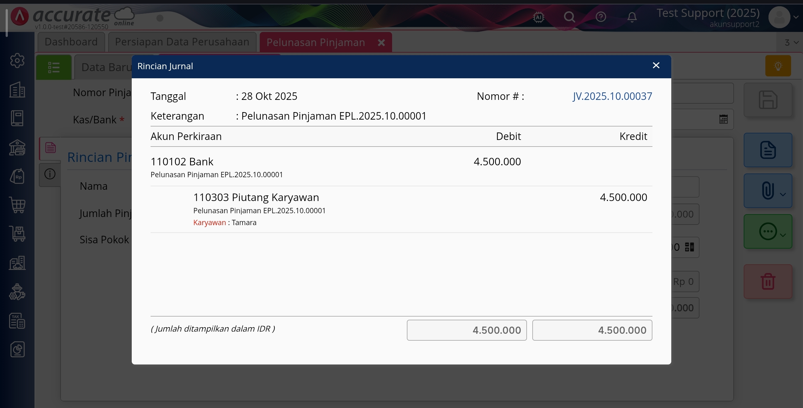 Jurnal yang terbentuk saat Pelunasan Pinjaman